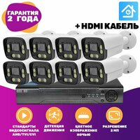 Представляем систему AHD видеонаблюдения, которая состоит из видеорегистратора и 8-и уличных камер с разрешением матриц 2 мегапикселя. Комплект включает в себя бухты кабелей и блоки питания. Данное доступное решение на основе AHD позволяет расположить камеры так, чтобы контролировать помещение без задержек и потери качества видеоизображения. Камеры имеют разрешение 2 мегапикселя и формируют картинку из 1920x1080 пикселей. Уличная всепогодная камера имеет отличную обзорность территории и детализацию объектов. Для детальных регулировок изображения есть возможность открыть OSD меню камеры и совершить детальные настройки изображения под свои требования.8-ми канальный гибридный видеорегистратор оснащен 8-ю входами BNC для подключения видеокамер стандарта AHD. Чтобы увидеть изображение с камер на мониторе, задняя сторона регистратора снабжена VGA и HDMI выходами для его подключения. Можно использовать 2 USB разъема для подключения внешних устройств. Один, как правило, задействован "мышью". Питание видеорегистратора осуществляется от постоянного тока DC 12 Вольт. Управлять системой видеонаблюдения с компьютера или смартфона возможно через сеть интернет с помощью программы CMS и облачного сервиса XMeye. Обязательным условием удаленного подключения является подключение видеорегистратора к интернету. Система видеонаблюдения имеет следующие возможности:- PUSH Оповещения. При тревожном событии придет оповещение на смартфон, чтобы владелец мог оперативно на него отреагировать.- Многопользовательский режим.- ВЕБ-подключение. Через портал и браузер IE. Все вышеперечисленные функции позволят вам чувствовать себя уверенно и контролировать все происходящее на территории, которую вы охраняете.