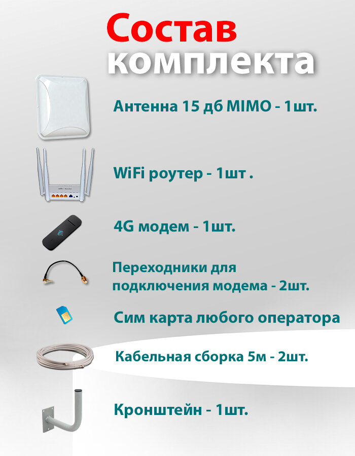 Готовый комплект для усиления мобильного 3G 4G LTE интернета для дачи, за город с 4G Модемом и WiFi Роутером + Cим карта с Интернетом: сравнение цен, характеристики, фото, актуальное наличие и цены.