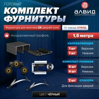 Готовый комплект фурнитуры для раздвижных дверей шкафа купе, с верхними, нижними направляющими, роликами на 2 двери и двумя стопорами, 1,5 метра: сравнение цен, характеристики, фото, актуальное наличие и цены.