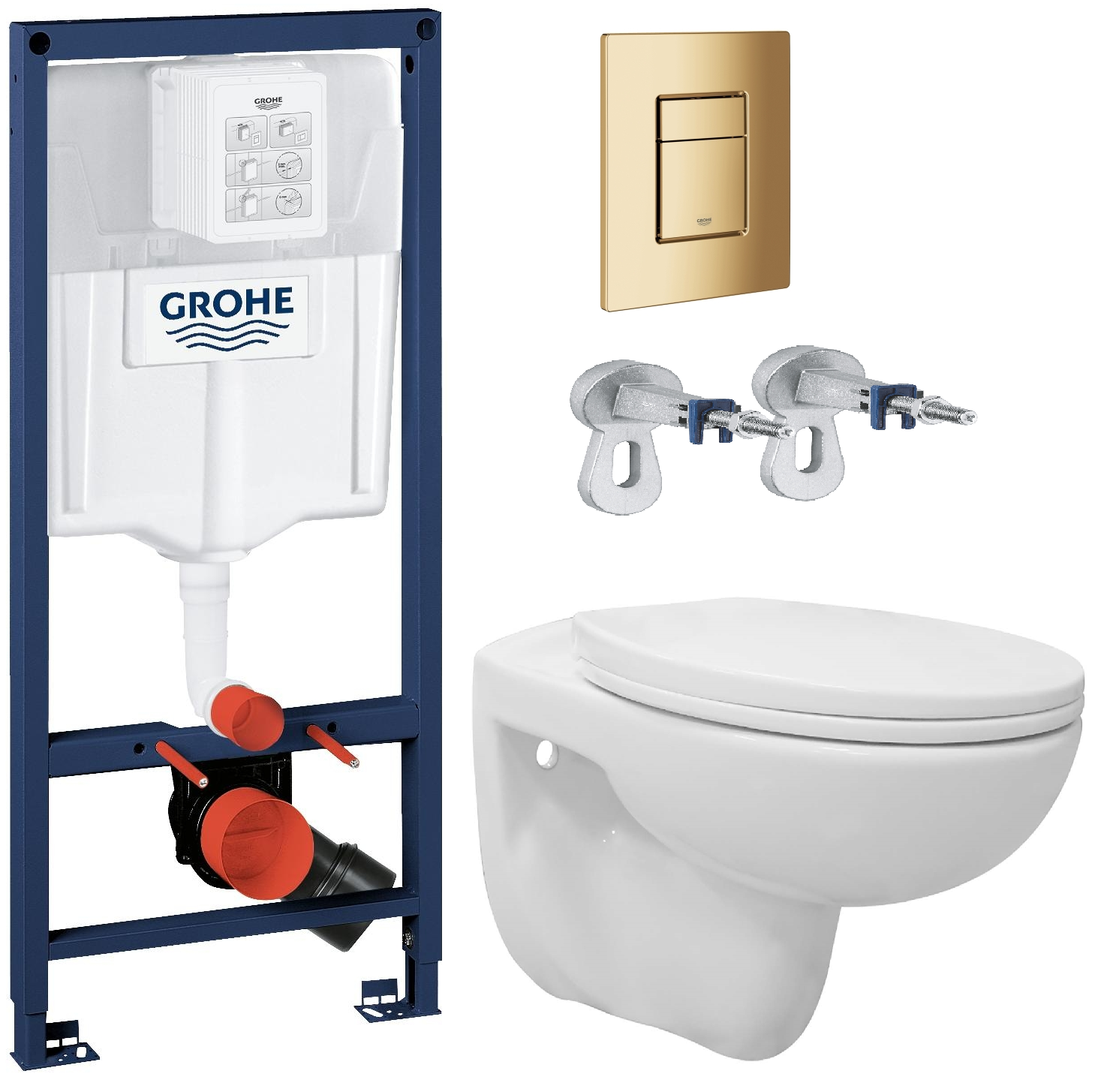 Готовый комплект для санузла, состоящий из инсталляции Grohe Rapid SL 38732GLO и подвесного унитаза Loranto Fredo.