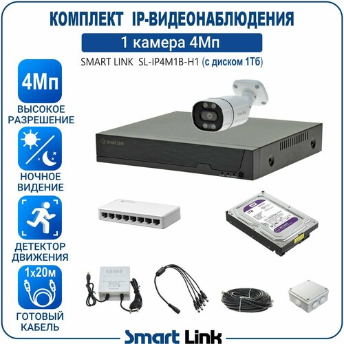 Готовый комплект IP-видеонаблюдения 4Мп, уличный, на 1 камеру, с жёстким диском на 1Tb, с удалённым просмотром, для дома / дачи / бизнеса. Smart Link SL-IP4M1B-H1: сравнение цен, характеристики, фото, актуальное наличие и цены.