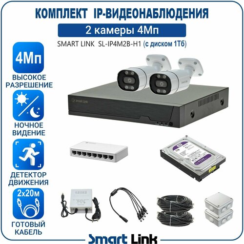 Готовый комплект IP-видеонаблюдения 4Мп, уличный, на 2 камеры, с жёстким диском на 1Tb, с удалённым просмотром, для дома / дачи / бизнеса. Smart Link SL-IP4M2B-H1: сравнение цен, характеристики, фото, актуальное наличие и цены.