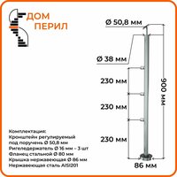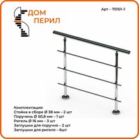 Комплект ограждений 1000 мм изготовлен из нержавеющей стали AISI 201, предназначен для эксплуатации в помещениях. Готовый комплект ограждения Дом перил – это экономия Вашего времени и денег. Приобретая готовый комплект, Вы можете самостоятельно собрать ограждение, не привлекая дорогостоящую монтажную бригаду. Стойки изготовлены на нашем производстве с применением аргонной сварки, благодаря чему все элементы составляют единую конструкцию. Сварные швы стойки идеально заполированы. Стойка легко монтируется к полу благодаря треханкерному фланцу с отверстиями под анкер-болт М8. Крепеж скрывает декоративная крышка. Ригеля фиксируются при помощи шестигранника. Поручень из нержавеющей стали так же легко закрепить при помощи сверла по нержавеющей стали и самореза. Прекрасный вариант для мастера, кто хочет поставить ограждение самостоятельно и не тратить время и деньги на сторонние монтажные работы. Важно! Саморезы, анкера, дюбеля в комплект НЕ входят, самостоятельно подберите крепеж под материал основания крепления. Комплект состоит: • Стойки в сборе с основанием под 3 анкера и декоративными крышками, ригеледержателями и регулируемыми наконечниками под поручень 50,8мм (полностью собраны и готовы к установке), диаметр 38 мм, высота 850 мм – 2 шт. • Поручень из нержавеющей стали диаметром 50.8 мм, длина 1000 мм – 1 шт. • Заглушки для поручня диаметром 50.8 мм – 2 шт. • Ригели диаметром 16 мм, длиной 1000 мм – 3 шт. • Заглушки для ригеля – 6 шт. Готовый комплект ограждения изготовлен из нержавеющей стали. Поручень призван облегчить и обезопасить подъем и спуск по лестнице и проход прямых участков. Возможна установка, как на ровной площадке, балюстраде, так и под углом, на лестничном марше. Перила для лестницы убережет от скольжения и падения на скользком полу, а также при входе и выходе. Установка перил будет особенно актуальна для семей с детьми, пожилыми людьми и людьми с ограниченными возможностями, а также инвалидам. Его прочность при ежедневных нагрузках гарантирована качественными материалами. Поручни для лестницы служат опорой при перемещении, обеспечивают защиту от падения, а так же имеют привлекательный современный дизайн. Ограждения для лестницы способны на протяжении десятилетий сохранять привлекательный внешний вид. Процесс установки перил из нержавейки достаточно простой, не требует особых профессиональных навыков, наличия специальных инструментов, так как крепление для ограждения идет в комплекте. Нет необходимости в проведении сварочных работ, технология монтажа не предполагает использование сложных крепежных элементов. Комплект ограждения из нержавейки - это прекрасный вариант для тех, кто хочет купить готовый комплект ограждения и не тратить много времени на монтажные работы.