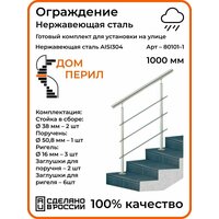 Комплект ограждений 1000 мм изготовлен из нержавеющей стали AISI 304, предназначен для эксплуатации в помещениях и на улице. Готовый комплект ограждения Дом перил– это экономия Вашего времени и денег. Приобретая готовый комплект, Вы можете самостоятельно собрать ограждение, не привлекая дорогостоящую монтажную бригаду. Стойки изготовлены на нашем производстве с применением аргонной сварки, благодаря чему все элементы составляют единую конструкцию. Сварные швы стойки идеально заполированы. Стойка легко монтируется к полу благодаря треханкерному фланцу с отверстиями под анкер-болт М8. Крепеж скрывает декоративная крышка. Ригеля фиксируются при помощи шестигранника. Поручень из нержавеющей стали так же легко закрепить при помощи сверла по нержавеющей стали и самореза. Прекрасный вариант для мастера, кто хочет поставить ограждение самостоятельно и не тратить время и деньги на сторонние монтажные работы. Комплект состоит: • Стойки в сборе с основанием под 3 анкера и декоративными крышками, ригеледержателями и регулируемыми наконечниками под поручень 50,8мм (полностью собраны и готовы к установке), диаметр 38 мм, высота 850 мм – 2 штуки. • Поручень из нержавеющей стали диаметром 50.8 мм, длина 1000 мм – 1 шт. • Заглушки для поручня диаметром 50.8 мм – 2 шт. • Ригели диаметром 16 мм, длиной 1000 мм – 3 шт. • Заглушки для ригеля – 6 шт. Важно! Саморезы, анкера, дюбеля в комплект НЕ входят, самостоятельно подберите крепеж под материал основания крепления. Готовый комплект ограждения изготовлен из нержавеющей стали. Поручень призван облегчить и обезопасить подъем и спуск по лестнице и проход прямых участков. Возможна установка, как на ровной площадке, балюстраде, так и под углом, на лестничном марше. Перила для лестницы убережет от скольжения и падения на скользком полу, а также при входе и выходе. Установка перил будет особенно актуальна для семей с детьми, пожилыми людьми и людьми с ограниченными возможностями, а также инвалидам. Его прочность при ежедневных нагрузках гарантирована качественными материалами. Поручни для лестницы служат опорой при перемещении, обеспечивают защиту от падения, а так же имеют привлекательный современный дизайн. Ограждения для лестницы способны на протяжении десятилетий сохранять привлекательный внешний вид. Процесс установки перил из нержавейки достаточно простой, не требует особых профессиональных навыков, наличия специальных инструментов, так как крепление для ограждения идет в комплекте. Нет необходимости в проведении сварочных работ, технология монтажа не предполагает использование сложных крепежных элементов. Комплект ограждения из нержавейки - это прекрасный вариант для тех, кто хочет купить готовый комплект ограждения и не тратить много времени на монтажные работы.