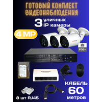 Комплект видеонаблюдения на 3 камеры IP KV-4028 BL Mic POE. Это полноценный комплект 4 Мп видеонаблюдения состоящий из 4х канального гибридного видеорегистратора, 4х портового POE коммутатора, 3 IP-камер видеонаблюдения c поддержкой PoE, кабель витая пара utp 4*2*0,5 - 60 метров, кабеля HDMI 1.5 метров, жесткого диска 500 GB (вставлен в регистратор) и 8 коннекторов RJ45. Управлять системой видеонаблюдения с вашего компьютера или смартфона возможно через интернет с помощью приложения XMeye. Набор использует технологию POE - камеры получают питание и передают видеоданные по одному 8-ми жильному ethernet-кабелю. Данный комплект обладает высоким качеством передаваемой картинки, что позволяет получить более детализированное изображение с углом обзора 107 градусов и объективом с фокусным расстоянием 2,8 мм . Благодаря поддержке протокола ONVIF камера видео наблюдения обеспечивает большую гибкость при проектировании системы IP видеонаблюдения. Комплект позволяет вести запись в режиме детекции движения. Данная возможность экономит пространство на жестком диске. Таким образом, вместо недели постоянной записи архив видео по движению может содержать месяц (и более) видеоданных. Меню имеет возможность настроить детекцию движения для каждого канала в отдельности, а также выставить следующие параметры: порог, область детекции, чувствительность, период, интервал, постзапись (длительность записи после детекции), вывод сообщения на экране монитора о тревоге, уведомление на почту о тревоге. Температурный диапазон работы камер от -40 до +60. Данные видеокамеры продолжают работу даже в очень сильные морозы. Также в ip камеру видеонаблюдения встроен микрофон, что позволяет вести аудиозапись. При подключении комплекта к сети Интернет, Вы можете следить за своим объектом из любой точки мира при помощи своего телефона, ноутбука, компьютера. Оповещение о тревоге на объекте. В данных комплектах можно настроить охраняемые зоны, в которых при появлении движения система будет выдавать сигнал о тревоге, путем отображения его на мониторе или отправки тревожного письма на Ваш электронный адрес. Видеокамеры данных комплектов имеют встроенную инфракрасную подсветку на 30 метров с автоматическим переключением день/ночь. Сжатие в формате H265. За счет эффективного кодирования экономия объемов памяти может достигать 50%. Поддержка 1 HDD SATA до 6 ТБ. В корпусе регистратора имеются интерфейсные провода и крепежные отверстия для подключения SATA жесткого диска размерностью 3.5 дюйма. Крепеж и кабели поставляются в комплекте с регистратором и камерами.