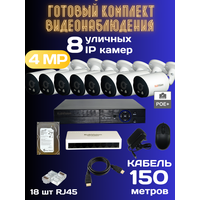Комплект видеонаблюдения на 8 камер IP KV-4028 BL Mic POE. Это полноценный комплект 4 Мп видеонаблюдения состоящий из 8ми канального гибридного видеорегистратора, 8ми портового POE коммутатора, 8 IP-камер видеонаблюдения c поддержкой PoE, кабель витая пара utp 4*2*0,5 - 150 метров, кабеля HDMI 1.5 метров, жесткого диска 500 GB (вставлен в регистратор) и 18 коннекторов RJ45. Управлять системой видеонаблюдения с вашего компьютера или смартфона возможно через интернет с помощью приложения XMeye. Набор использует технологию POE - камеры получают питание и передают видеоданные по одному 8-ми жильному ethernet-кабелю. Данный комплект обладает высоким качеством передаваемой картинки, что позволяет получить более детализированное изображение с углом обзора 107 градусов и объективом с фокусным расстоянием 2,8 мм . Благодаря поддержке протокола ONVIF камера видео наблюдения обеспечивает большую гибкость при проектировании системы IP видеонаблюдения. Комплект позволяет вести запись в режиме детекции движения. Данная возможность экономит пространство на жестком диске. Таким образом, вместо недели постоянной записи архив видео по движению может содержать месяц (и более) видеоданных. Меню имеет возможность настроить детекцию движения для каждого канала в отдельности, а также выставить следующие параметры: порог, область детекции, чувствительность, период, интервал, постзапись (длительность записи после детекции), вывод сообщения на экране монитора о тревоге, уведомление на почту о тревоге. Температурный диапазон работы камер от -40 до +60 С. Данные видеокамеры продолжают работу даже в очень сильные морозы. Также в ip камеру видеонаблюдения встроен микрофон, что позволяет вести аудиозапись. При подключении комплекта к сети Интернет, Вы можете следить за своим объектом из любой точки мира при помощи своего телефона, ноутбука, компьютера. Оповещение о тревоге на объекте. В данных комплектах можно настроить охраняемые зоны, в которых при появлении движения система будет выдавать сигнал о тревоге, путем отображения его на мониторе или отправки тревожного письма на Ваш электронный адрес. Видеокамеры данных комплектов имеют встроенную инфракрасную подсветку на 30 метров с автоматическим переключением день/ночь. Сжатие в формате H265. За счет эффективного кодирования экономия объемов памяти может достигать 50%. Поддержка 1 HDD SATA до 8 ТБ. В корпусе регистратора имеются интерфейсные провода и крепежные отверстия для подключения SATA жесткого диска размерностью 3.5 дюйма. Крепеж и кабели поставляются в комплекте с регистратором и камерами.