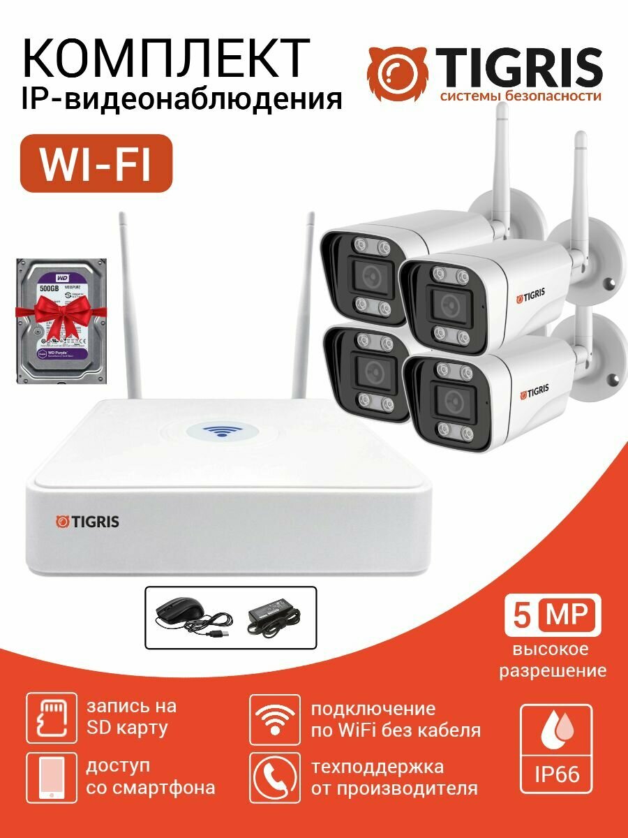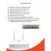 Данный комплект видеонаблюдения содержит все необходимое для установки и настройки полноценной профессиональной системы IP-видеонаблюдения из 4-х цифровых PoE-видеокамер Wi-Fi с разрешением 5 мегапикселей, встроенным микрофоном и возможностью записи видео на карту памяти microSD.