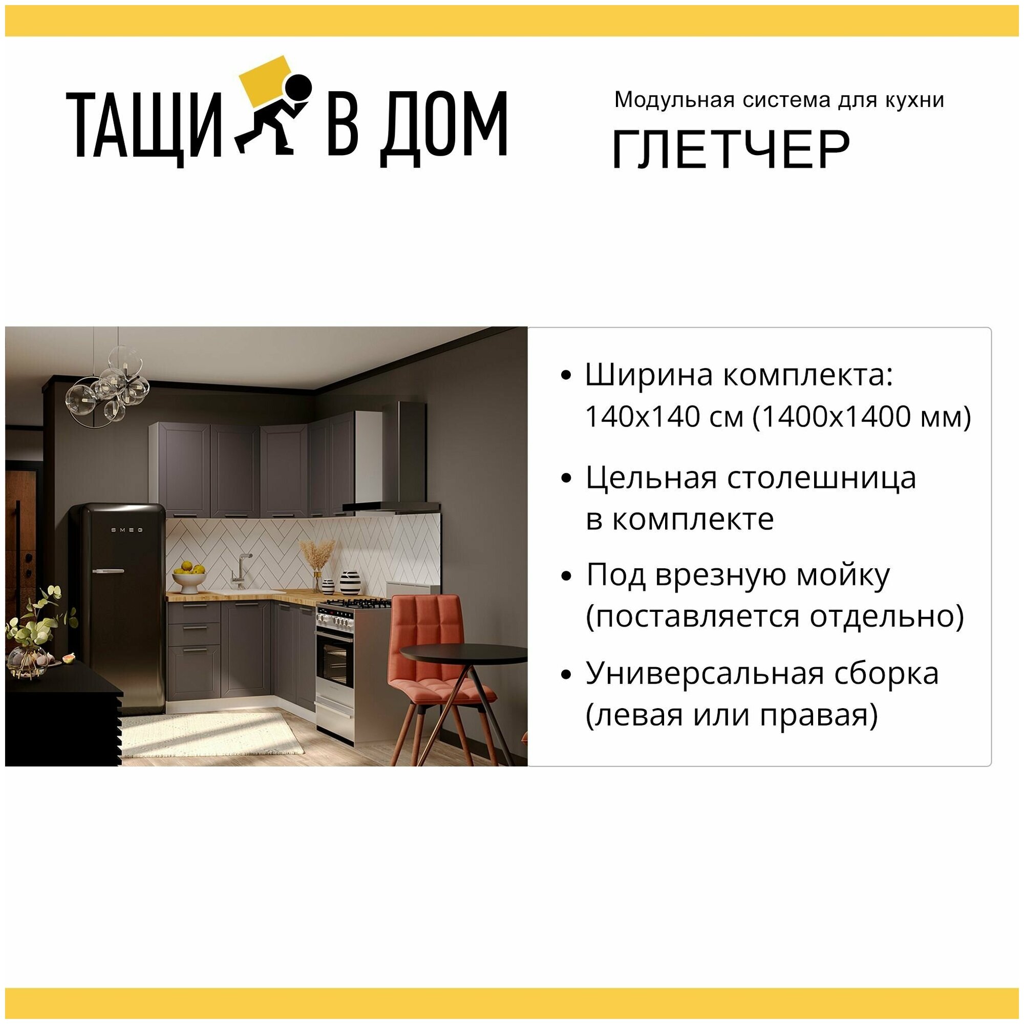 | Дополнительная информация | Столешница поставляется в размер кухни (длинномер) Мойка в комплект не входит Бытовая техника покупается отдельно |