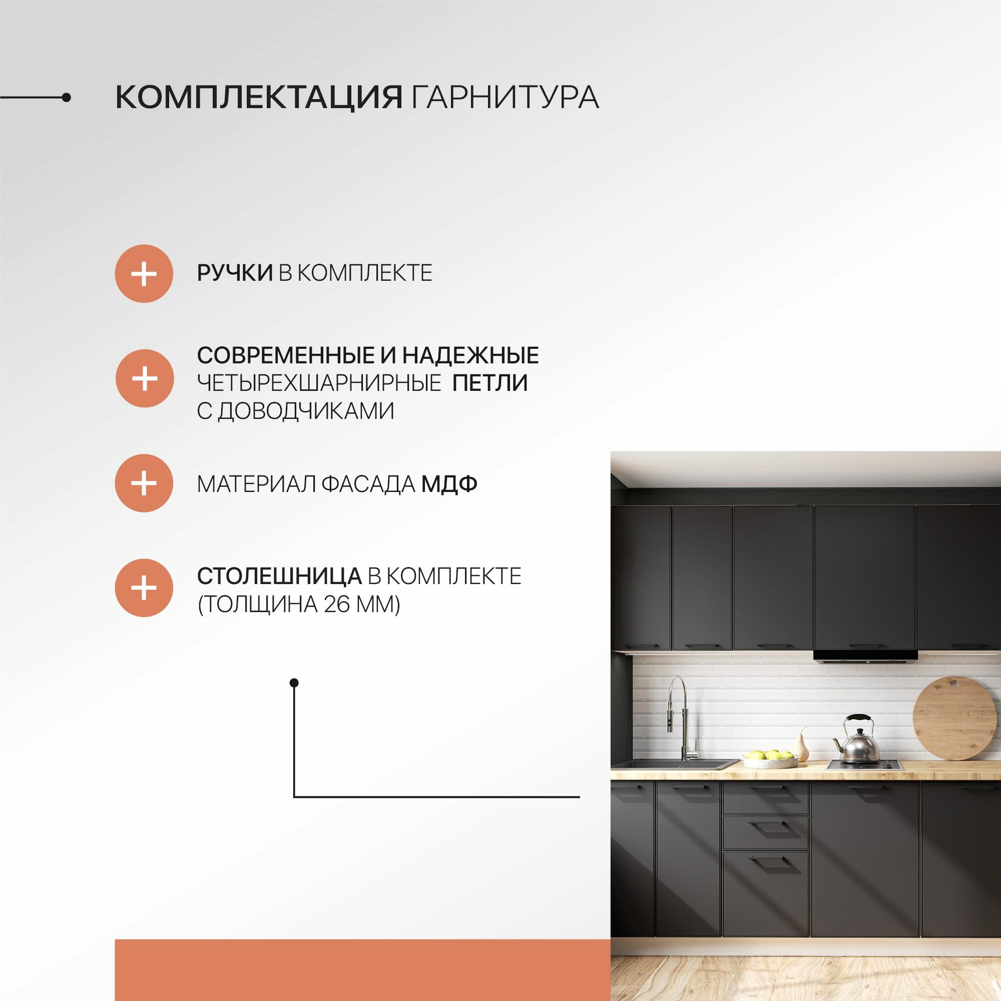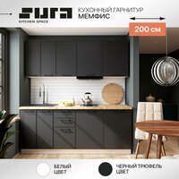 Купить Готовый кухонный гарнитур Сурская мебель Мемфис 200x60x215,8 см Белый/Черный трюфель с доставкой по всей России.