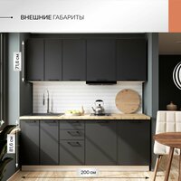 Готовый кухонный гарнитур Сурская мебель Мемфис 200x60x215,8 см Белый/Черный трюфель