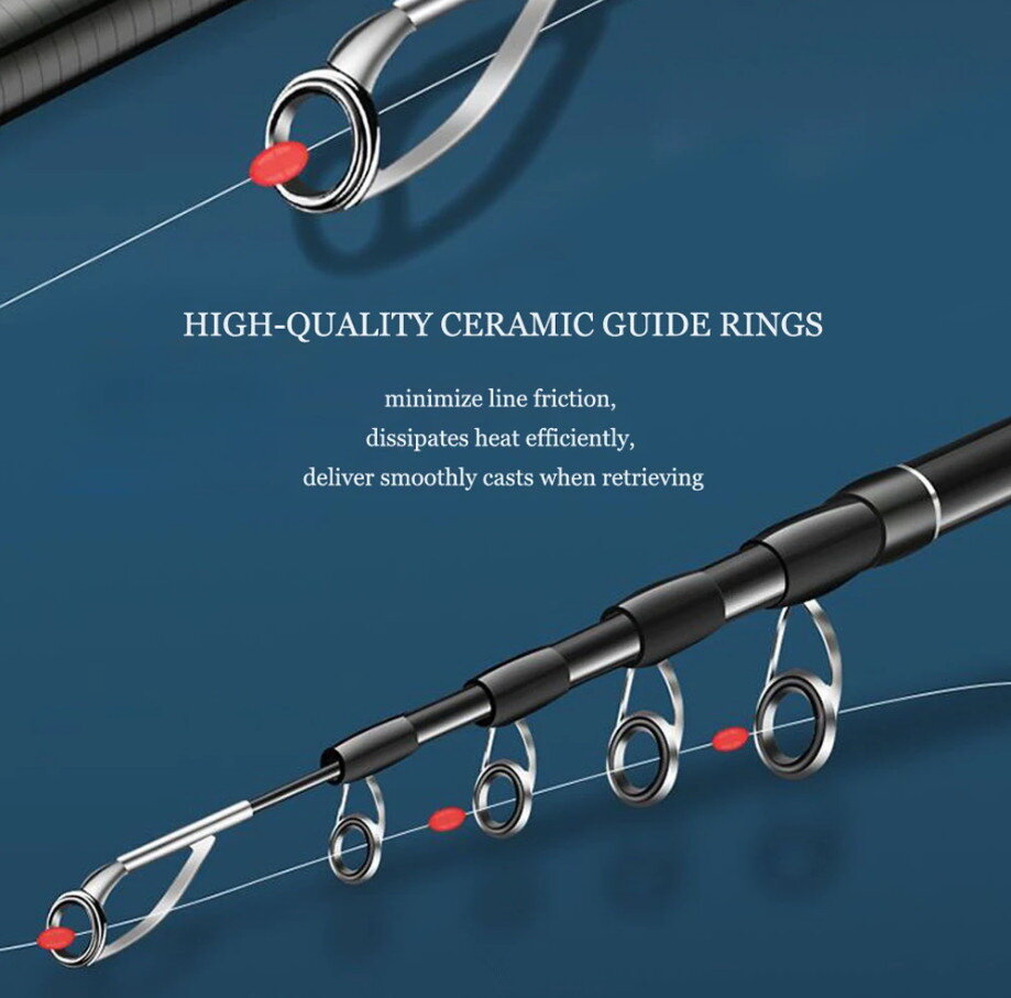 Готовый набор для рыбалки, спиннинг телескопический комплект с катушкой плетеным шнуром и карабином, трэвел - спиннинг.