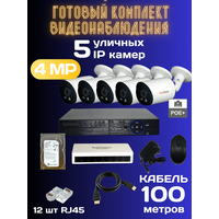 Комплект видеонаблюдения на 5 камер IP KV-4028 BL Mic POE. Это полноценный комплект 4 Мп видеонаблюдения состоящий из 8ми канального гибридного видеорегистратора, 8ми портового POE коммутатора, 5 IP-камер видеонаблюдения c поддержкой PoE, кабель витая пара utp 4*2*0,5 - 100 метров, кабеля HDMI 1.5 метров, жесткого диска 500 GB (вставлен в регистратор) и 12 коннекторов RJ45. Управлять системой видеонаблюдения с вашего компьютера или смартфона возможно через интернет с помощью приложения XMeye. Набор использует технологию POE - камеры получают питание и передают видеоданные по одному 8-ми жильному ethernet-кабелю. Данный комплект обладает высоким качеством передаваемой картинки, что позволяет получить более детализированное изображение с углом обзора 107 градусов и объективом с фокусным расстоянием 2,8 мм . Благодаря поддержке протокола ONVIF камера видео наблюдения обеспечивает большую гибкость при проектировании системы IP видеонаблюдения. Комплект позволяет вести запись в режиме детекции движения. Данная возможность экономит пространство на жестком диске. Таким образом, вместо недели постоянной записи архив видео по движению может содержать месяц (и более) видеоданных. Меню имеет возможность настроить детекцию движения для каждого канала в отдельности, а также выставить следующие параметры: порог, область детекции, чувствительность, период, интервал, постзапись (длительность записи после детекции), вывод сообщения на экране монитора о тревоге, уведомление на почту о тревоге. Температурный диапазон работы камер от -40 до +60 С. Данные видеокамеры продолжают работу даже в очень сильные морозы. Также в ip камеру видеонаблюдения встроен микрофон, что позволяет вести аудиозапись. При подключении комплекта к сети Интернет, Вы можете следить за своим объектом из любой точки мира при помощи своего телефона, ноутбука, компьютера. Оповещение о тревоге на объекте. В данных комплектах можно настроить охраняемые зоны, в которых при появлении движения система будет выдавать сигнал о тревоге, путем отображения его на мониторе или отправки тревожного письма на Ваш электронный адрес. Видеокамеры данных комплектов имеют встроенную инфракрасную подсветку на 30 метров с автоматическим переключением день/ночь. Сжатие в формате H265. За счет эффективного кодирования экономия объемов памяти может достигать 50%. Поддержка 1 HDD SATA до 8 ТБ. В корпусе регистратора имеются интерфейсные провода и крепежные отверстия для подключения SATA жесткого диска размерностью 3.5 дюйма. Крепеж и кабели поставляются в комплекте с регистратором и камерами.