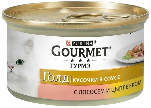 Gourmet Gold — это линия кормов для кошек, которая предлагает разнообразные варианты влажного корма, включая кусочки в соусе. Один из популярных вариантов — это корм с лососем и цыплёнком. Вот некоторые характеристики и плюсы этого продукта: