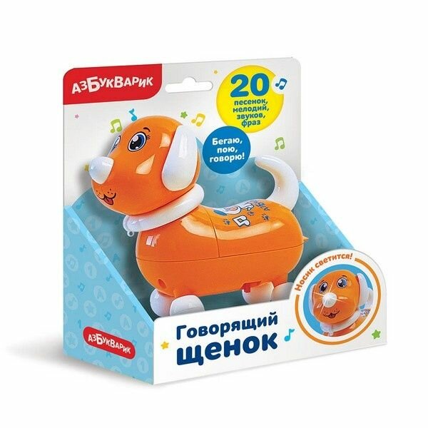 Говорящий щенок Азбукварик Оранжевый в коробке, 15х7х17,5 см (2989А): сравнение цен, характеристики, фото, актуальное наличие и цены.