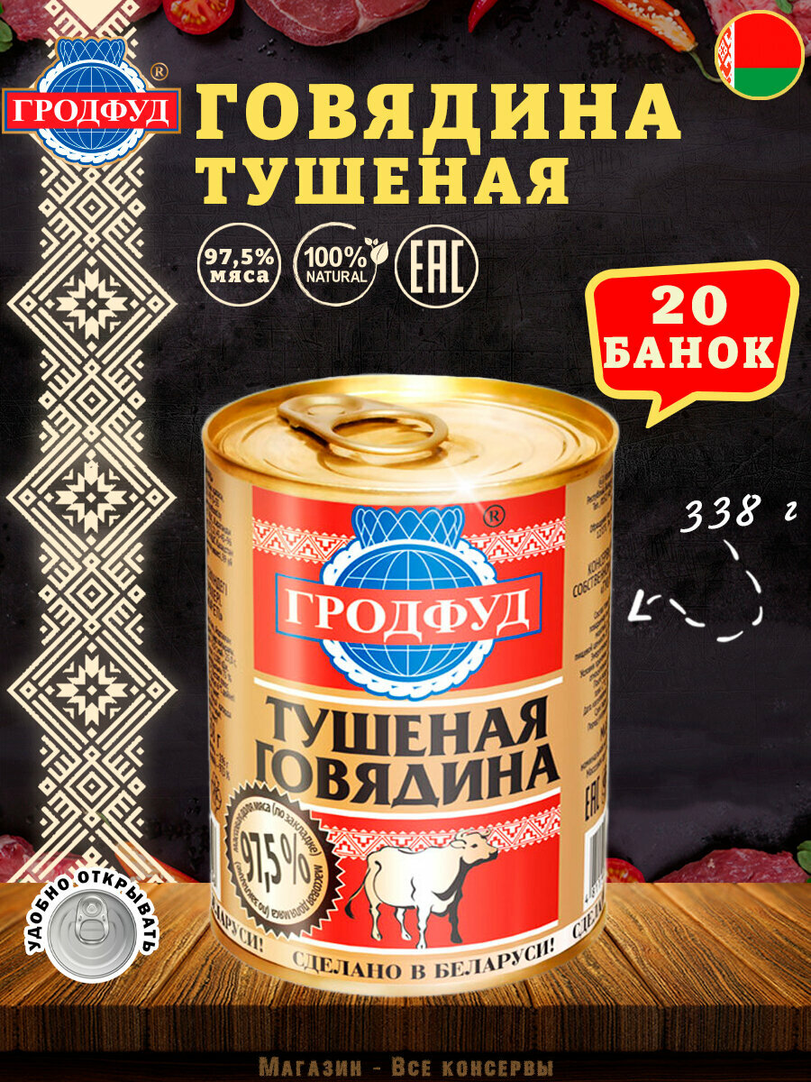 Купить Говядина тушеная, Гродфуд, 20 шт. по 338 г с доставкой по всей России. Говядина тушеная, Гродфуд, 20 шт. по 338 г: сравнение цен, характеристики, фото, актуальное наличие и цены.
