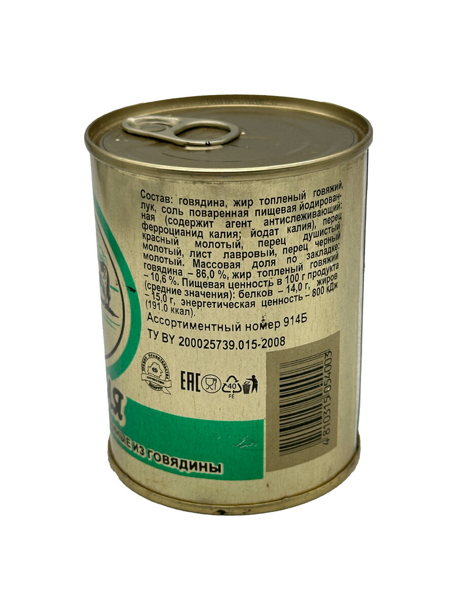 Говядина тушеная "Селянская" подходит для употребления как в горячем, так и в холодном виде, что делает ее универсальным дополнением к вашему столу. Эта тушенка может преобразить обед или ужин, а также стать отличным ингредиентом для разнообразных блюд.