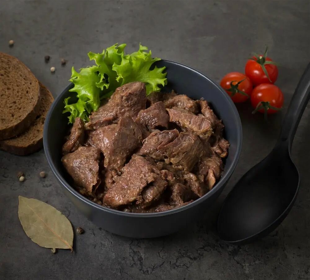 | Состав | говядина, телятина, жир топленый говяжий, лук, соль поваренная пищевая йодированная, (соль содержит агент антислеживающий: ферроцианид калия, йодат калия), перец красный молотый, перец душистый молотый, перец черный молотый, говядина - 66,0%, телятина - 20,0%, жир топленый говяжий - 10,6%. |
