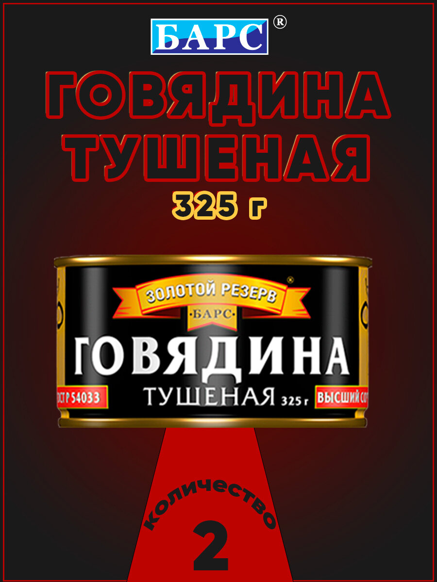 Купить Говядина тушеная, В/С, ГОСТ, Золотой резерв, Барс, 2 шт. по 325 г с доставкой по всей России. Говядина тушеная, В/С, ГОСТ, Золотой резерв, Барс, 2 шт. по 325 г: сравнение цен, характеристики, фото, актуальное наличие и цены.