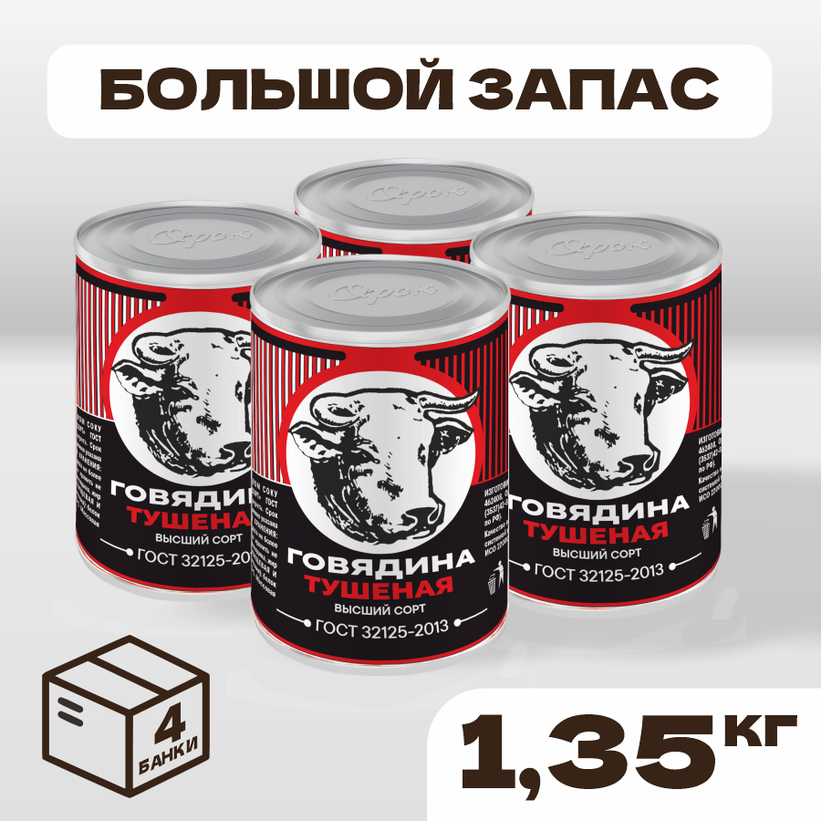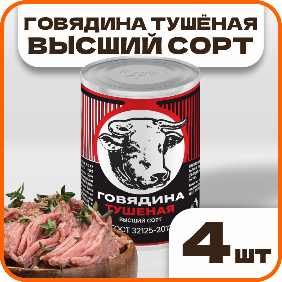 Говядина тушеная высший сорт ГОСТ, в наборе 4 шт по 338гр, Орский мясокомбинат: сравнение цен, характеристики, фото, актуальное наличие и цены.