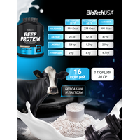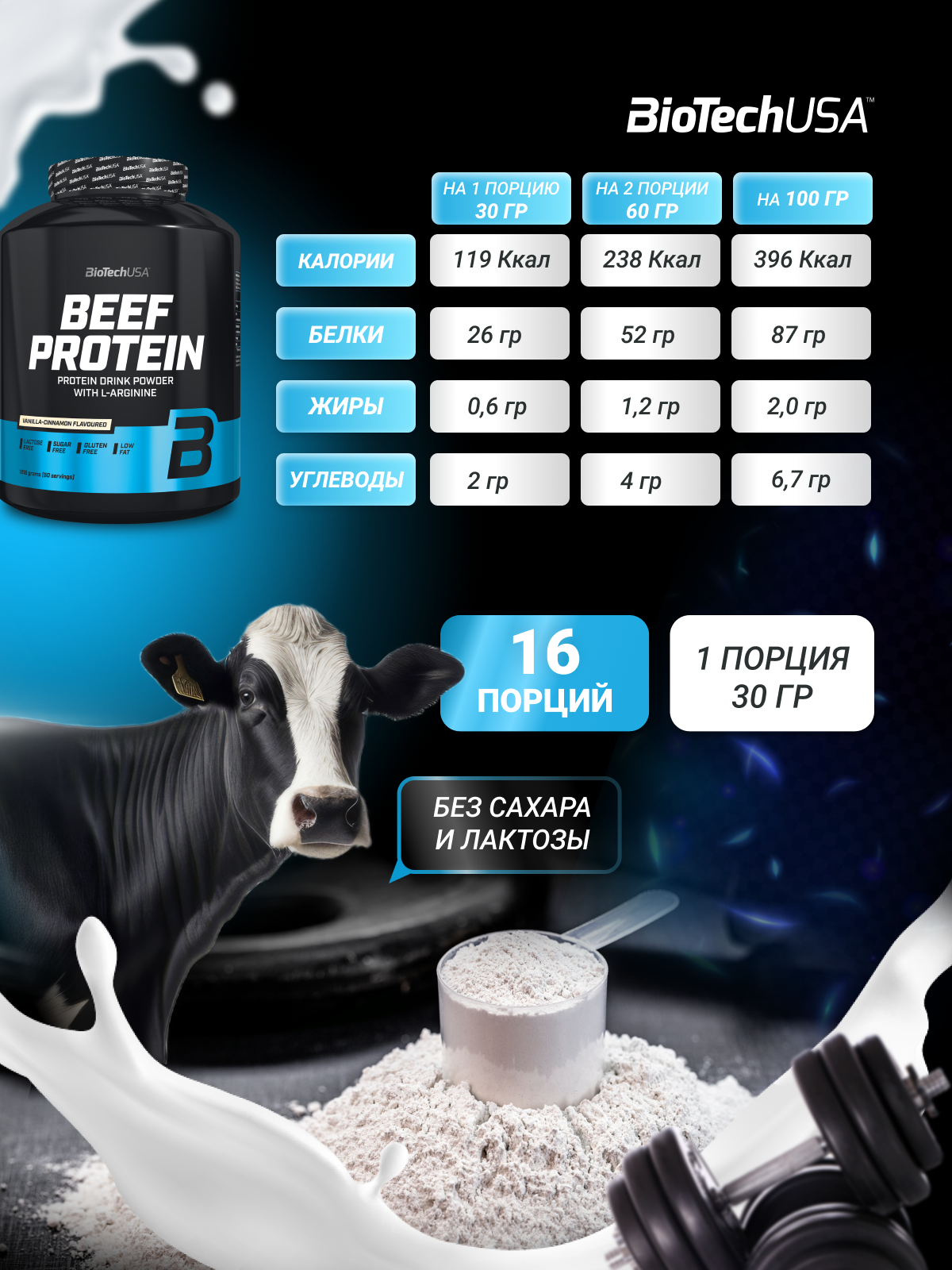 | Дополнительная информация | состав указан для вкуса "шоколад-кокос"; для вкуса "клубника-банан": гидролизованный говяжьего протеина (89,5%), мальтодекстрин, витаминный премикс (L-аскорбиновая кислота, никотинамид, DL-альфа-токоферола ацетат, гидрохлорид пиридоксина, рибофлавина, тиамина мононитрат, pteroylmonoglutamic кислота, D-биотин, бета-каротин, цианокобаламин), загуститель (натрий карбоксиметилцеллюлоза), клубники, банановый вкус, подсластитель (сукралоза), L-аргинин, L-глутамин, цвет (кошениль), L-лейцин, бромелайн фермента (1200 ГДУ), инулин, L-валин, L-изолейцин; для вкуса "ваниль-корица": гидролизованный белок из говядины (89,5%), мальтодекстрин, витаминный премикс (L-аскорбиновая кислота, никотинамид, DL-альфа-токоферол ацетат, пиридоксин гидрохлорид, рибофлавин, тиамин мононитрат, pteroylmonoglutamic кислота, D-биотин, бета-каротин, цианокобаламин), загуститель (натрий карбоксиметилцеллюлоза), ароматизатор ванильный, корица, подсластитель (сукралоза), L-аргинин, L-глутамин, L лейцин, бромелайн фермента (1200 ГДУ), инулин, L-валин, L-изолейцин; рекомендации по применению: Смешайте порцию Beef Protein с 250-350 мл воды.При взбалтывании протеин может вспениться.Принимайте 2-3 раза в день.; состав: гидролизованный говяжьего протеина (87,5%), какао-порошок, мальтодекстрин, витаминный премикс (L-аскорбиновая кислота, никотинамид, DL-альфа-токоферола ацетат, гидрохлорид пиридоксина, рибофлавина, тиамина мононитрат, pteroylmonoglutamic кислота, D-биотин, бета-каротин, цианокобаламин), загуститель (натрий карбоксиметилцеллюлоза), шоколадный вкус, аромат кокосового, подсластитель (сукралоза), L-аргинин, L-глутамин, цвет (обычный карамели), L-лейцин, бромелайн фермента (1200 ГДУ), инулин, L-валин, L-изолейцин |