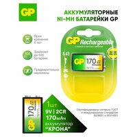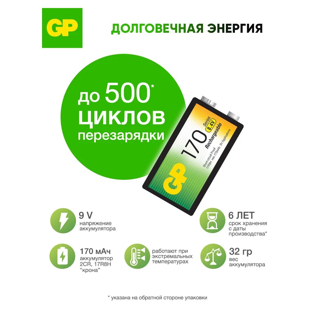 GP Перезаряжаемые аккумуляторы 17R8H 9V Крона, ескость 170 мАч — 1 шт. в блистере. 17R8H-2CRU 17R8H-2CRU 16036167: сравнение цен, характеристики, фото, актуальное наличие и цены.