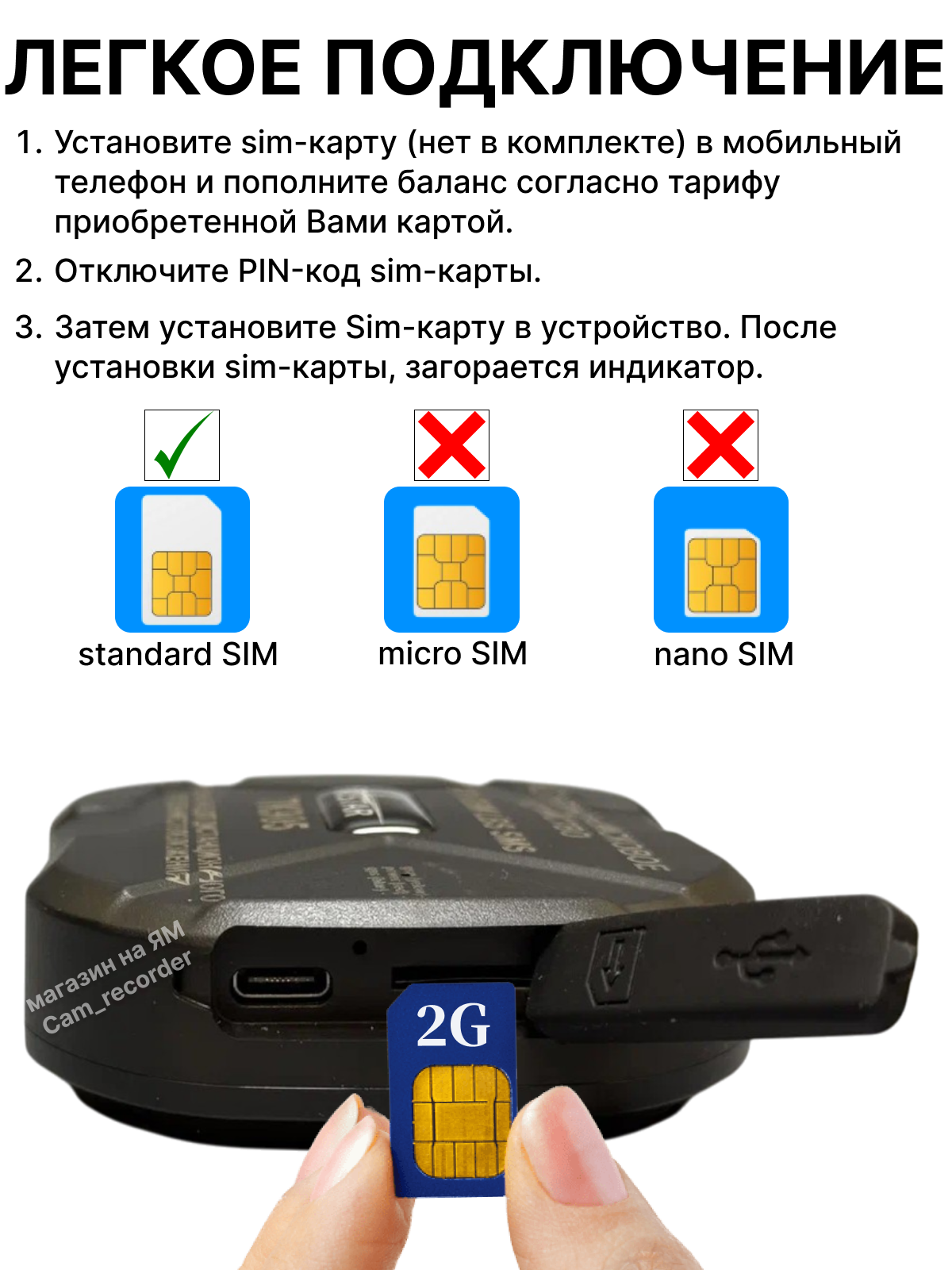 Обратите внимание! У данной модели НЕТ аудиоконтроля, ТК gps-трекер НЕ имеет встроенного микрофона. Представляем вашему вниманию автомобильный GPS трекер TKSTAR TK905. Данная модель помогает защитить машину от угона, контролировать водителей коммерческого транспорта, а также перемещения ребенка, пожилых людей и домашних питомцев. GPS трекер TK905 со встроенным аккумулятором емкостью 5000 мАч, способен проработать до 90 дней в режиме ожидания. В режиме ожидания устройство переходит в спящий режим, что продлевает его работу. Данный трекер оснащен слотом для SIM-карты 2G, благодаря этому он способен мгновенно передавать информацию о своем местоположении. TKSTAR TK905 работает от самых передовых технологий GPS и LBS двойного позиционирования. Используя GPS функцию для передачи координат совместно с LBS (точность составляет 100-1000 метров) и GPS (точность составляет 5-10 метров) позиционированием, на ваш мобильный телефон через СМС или мобильное приложение WINNES GPS на русском языке. особенности: Двойное позиционирование (GPS приёмник и LBS сотового оператора); Способен проработать до 90 дней без подзарядки в спящем режиме; Работает в режиме отслеживания в реальном времени и спящем режиме для экономии заряда аккумулятора; Настраиваются зоны контроля; Воспроизведение истории маршрута за последние 6 месяцев; Аварийный сигнал о превышении заранее заданной скорости; Сигнал о встряхивании трекера; Водонепроницаемый IP65. Управление через мобильное приложение; Управление через СМС. характиристики: Модель: TK905; Материал: ABS-пластик; Цвет: черный; Слот для сим карты: 2G (в комплект не входит); GPS точность: 5 м; Сеть: GSM/GPRS; Модуль GSM/GPRS: SIMCOM300/SIMCOM340; Диапазоны работы: 850/900/1800/1900 Mhz; Чип GPS: U-blox UBX-G7020; GPS чувствительность: -159 dBm; Время старта: холодный старт ~ 45 сек, тёплый старт ~ 35 сек, горячий старт ~ 1 сек; Гео-забор: есть; Голосовой мониторинг: НЕТ; Приложение: WINNES GPS (iOs, Android); Емкость аккумулятора: 5000 mAh; Время зарядки: до 3 часов; Время работы в режиме ожидания: до 90 дней; Рабочая температура: от -20 °C до +55 °C; Размеры: 92х72х22 мм; Вес: 160.