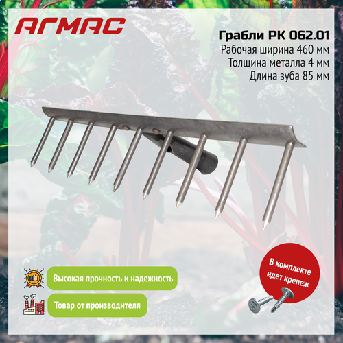 Грабли РК 062.01 – незаменимый помощник для идеального порядка в саду и огороде! Преимущества: ✔ Прочная конструкция – изготовлены из качественного металла (толщина 4 мм) с 9 зубьями (Ø 8 мм) ✔ Универсальное применение – выравнивание почвы, измельчение комьев, уборка листьев и травы ✔ Удобство в работе – подходят для стандартного черенка (Ø 30 мм) ✔ Долговечность – надежное крепление и устойчивость к нагрузкам Идеально подходят для: Подготовки грядок к посадке Уборки территории после скашивания травы Выравнивания песка и рыхлой почвы Удаления сорняков с корневищами Сделайте работу в саду легкой и приятной с нашими надежными граблями!