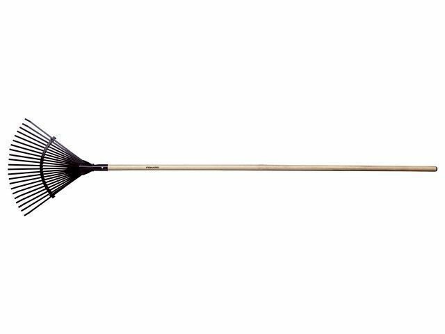 Грабли для листьев с чер. FISKARS Classic. Fiskars Classic - это красивый традиционный набор инструментов. Стержни изготовлены из лакированного ясеня, а лезвия - из бористой стали. Веерные грабли для листьев Fiskars Classic черные предназначены для уборки листвы, веточек и скошенной травы, в том числе на небольших поверхностях, вокруг деревьев, под кустарниками. На рабочей части расположена распорка, которая усиливает пружинящий эффект и дополнительно упрочняет конструкцию. Достаточная длина черенка, выполненного из дерева, позволяет работать инструментом не наклоняясь, затрачивая минимум усилий и извлекая максимум пользы.