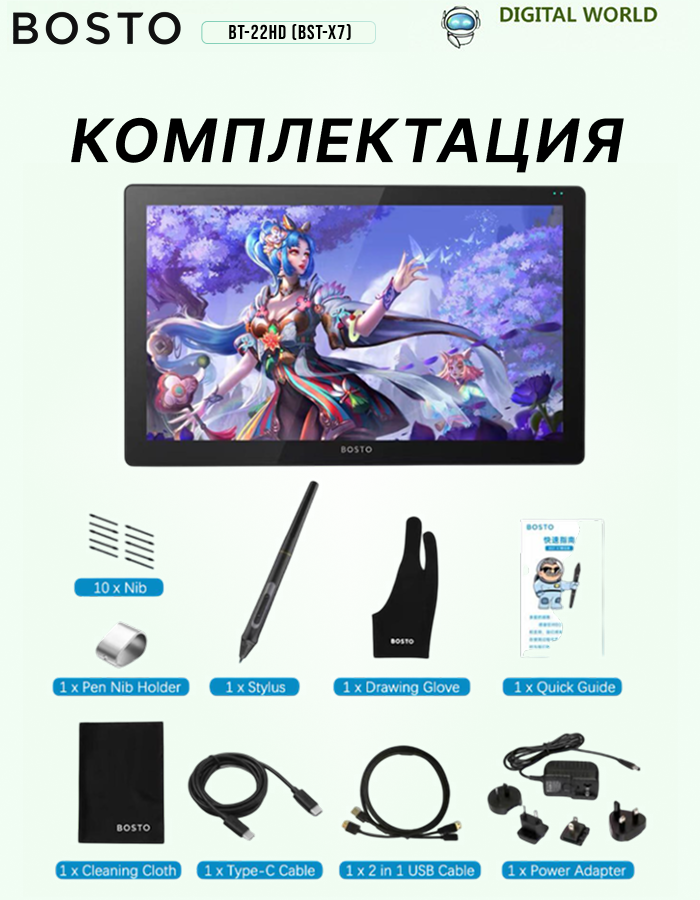 | Подробная комплектация | Планшет для письма, 1 х стилус, аксессуары, инструкции |