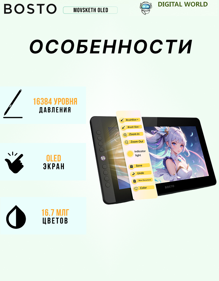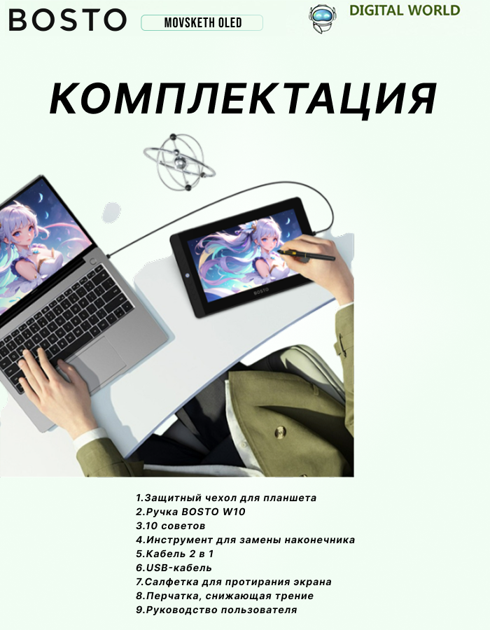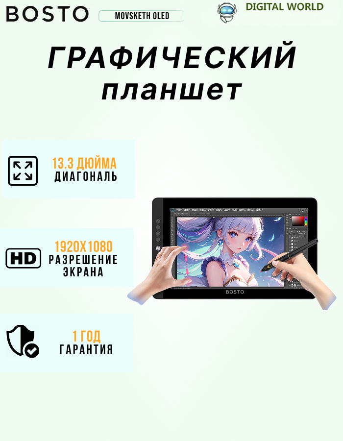Графический планшет BOSTO Movsketh, Oled, диагональ 13″, интерфейсы mini-HDMI, Type-C: сравнение цен, характеристики, фото, актуальное наличие и цены.