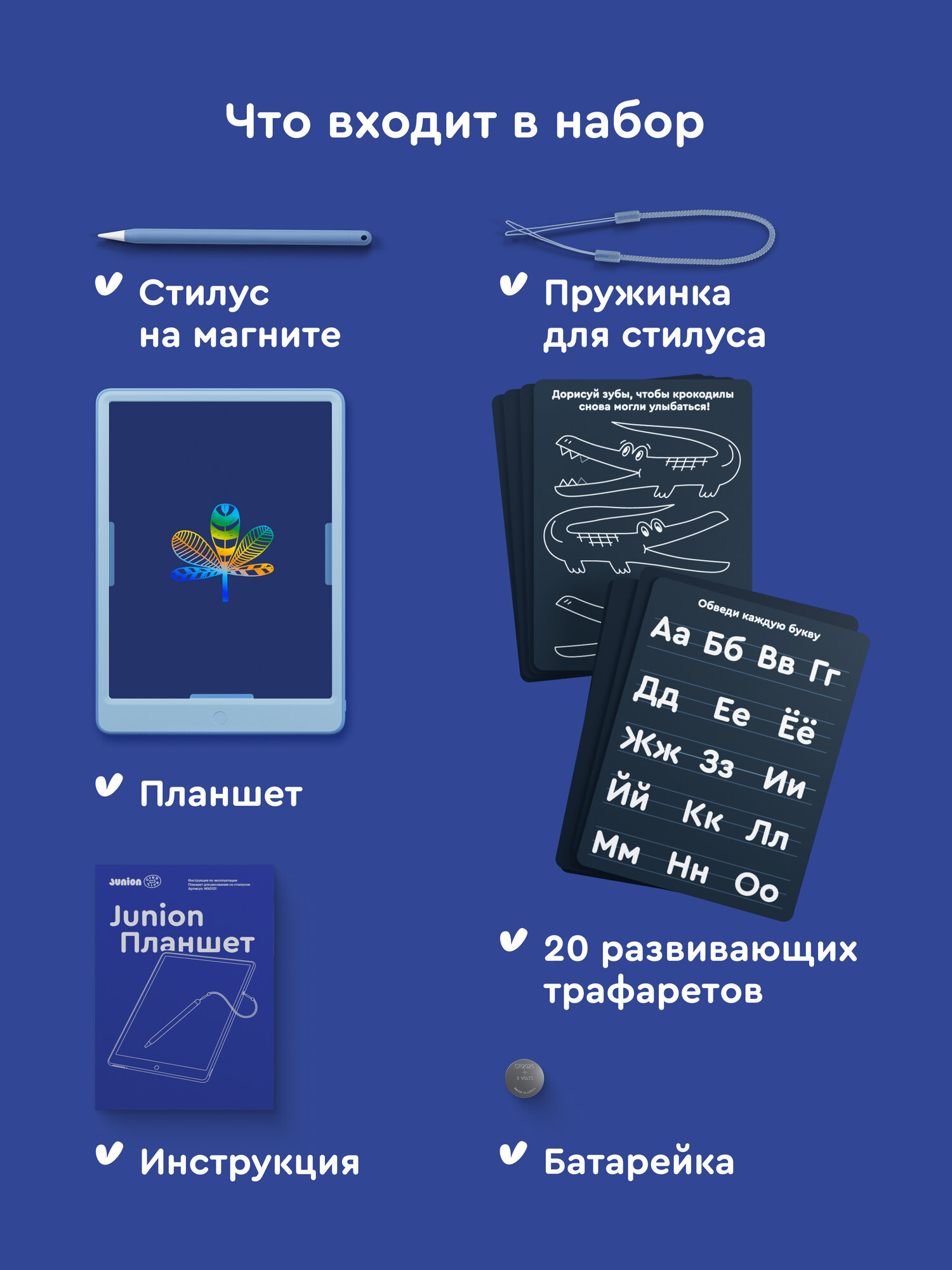 Купить Графический планшет для рисования c обучающими трафаретами Junion Creative со стилусом на магните, 12 дюймов с доставкой по всей России. Графический планшет для рисования c обучающими трафаретами Junion Creative со стилусом на магните, 12 дюймов: сравнение цен, характеристики, фото, актуальное наличие и цены.