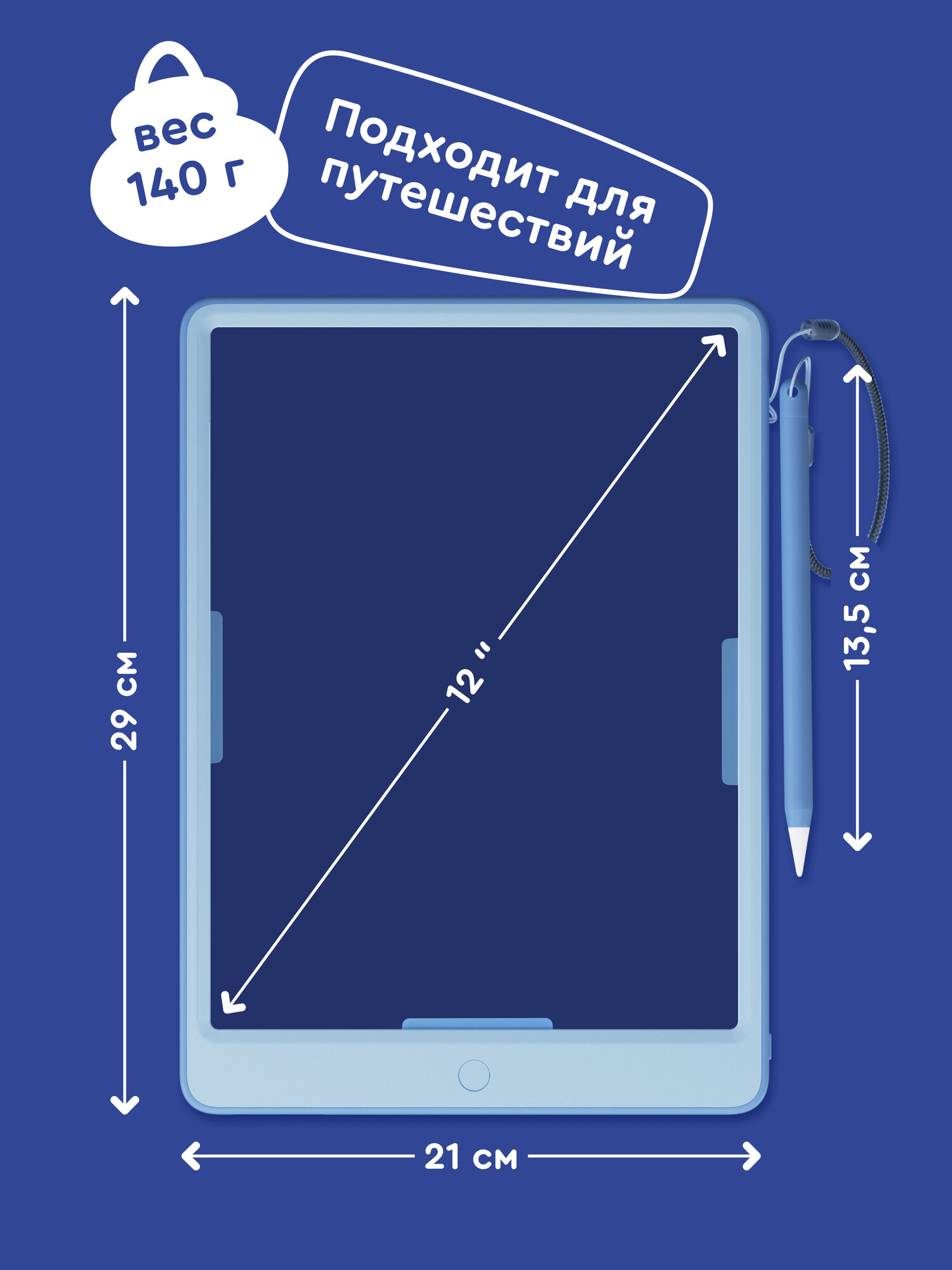 Графический планшет для творчества Junion Creative придуман в Яндекс Фабрике настоящими родителями. На планшете можно рисовать, учиться писать и считать, а ещё играть. В комплекте 20 обучающих трафаретов: задания на поиск соответствий, рисование, изучение букв и цифр. Планшет помогает развивать внимательность, мелкую моторику и интерес к творчеству. Он лёгкий и тонкий, с диагональю экрана 12 дюймов — подходит для маленьких художников и исследователей. Магнитный стилус на пружинке закреплён на корпусе — будет под рукой и точно не потеряется. Толщина штриха регулируется нажатием — можно экспериментировать с разными техниками рисования. Экран с градиентной подложкой не мерцает и не вредит зрению. Планшет удобно взять с собой в путешествие — в комплекте есть батарейка. Ударопрочный корпус защитит экран при падениях. Чтобы случайно не удалить рисунок, есть функция блокировки экрана. А если захочется начать всё сначала — рисунок просто стереть с помощью кнопки на корпусе. Детский планшет подойдёт детям от 3 лет.