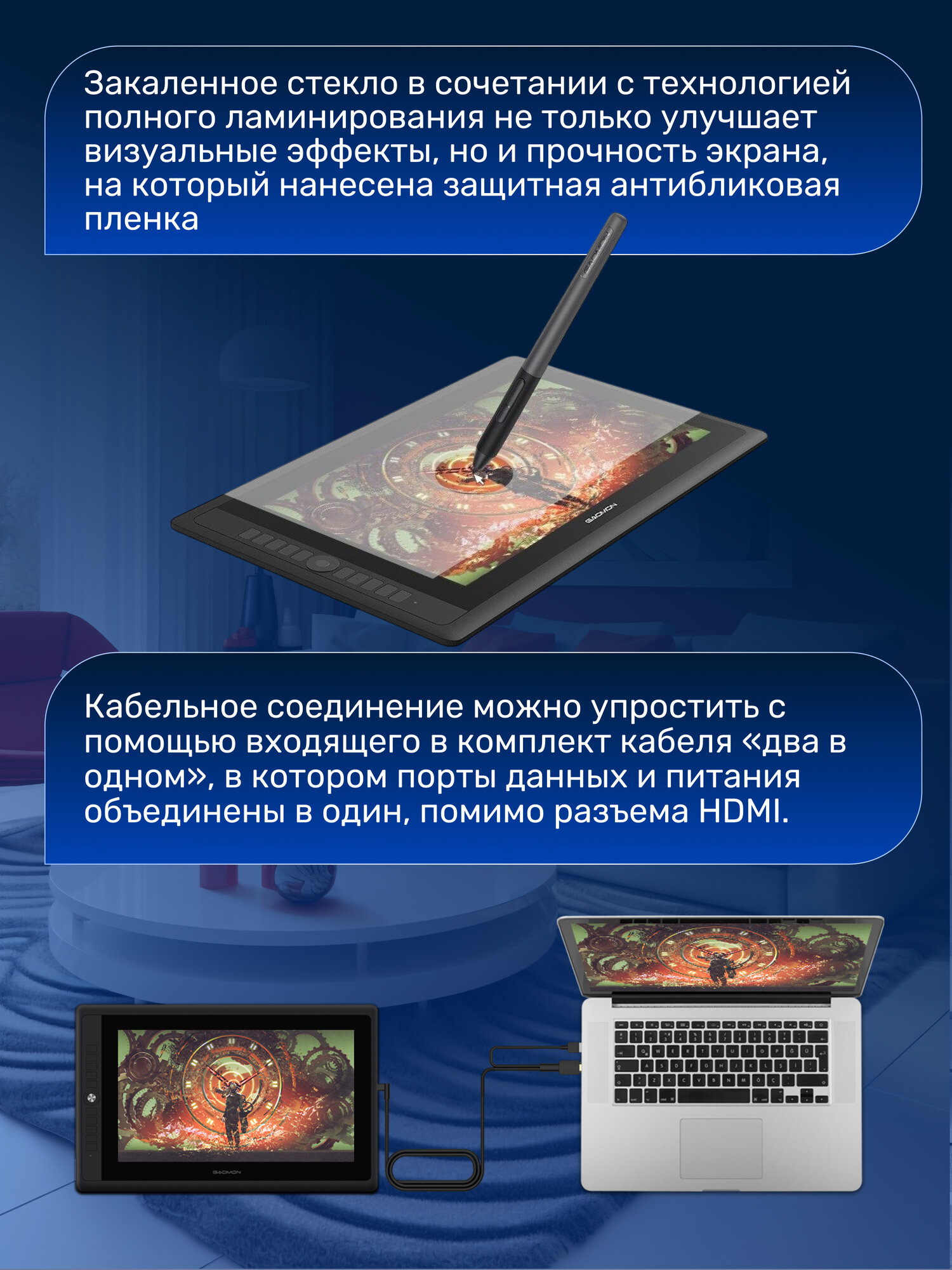 | Подробная комплектация | графический планшет; цифровое перо AP50; 8 запасных наконечников для пера; кабель USB 3 в 1; зарядное устройство с адаптером; руководство пользователя |