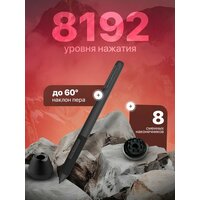 8192 уровня чувствительности к давлению и максимальная скорость до 266 RPS позволят каждому создать свое произведение искусства с потрясающей плавностью и легкостью. Перо не нужно заряжать, оно работает без батареи. Поддерживается функция наклона пера до 60 градусов. Стилус EMR без батареи не требует батареи или заряда и упрощает рисование. Скорость передачи данных 266PPS позволяет мгновенно реагировать на каждый ввод, что обеспечивает более плавные линии и предотвращает любые задержки.