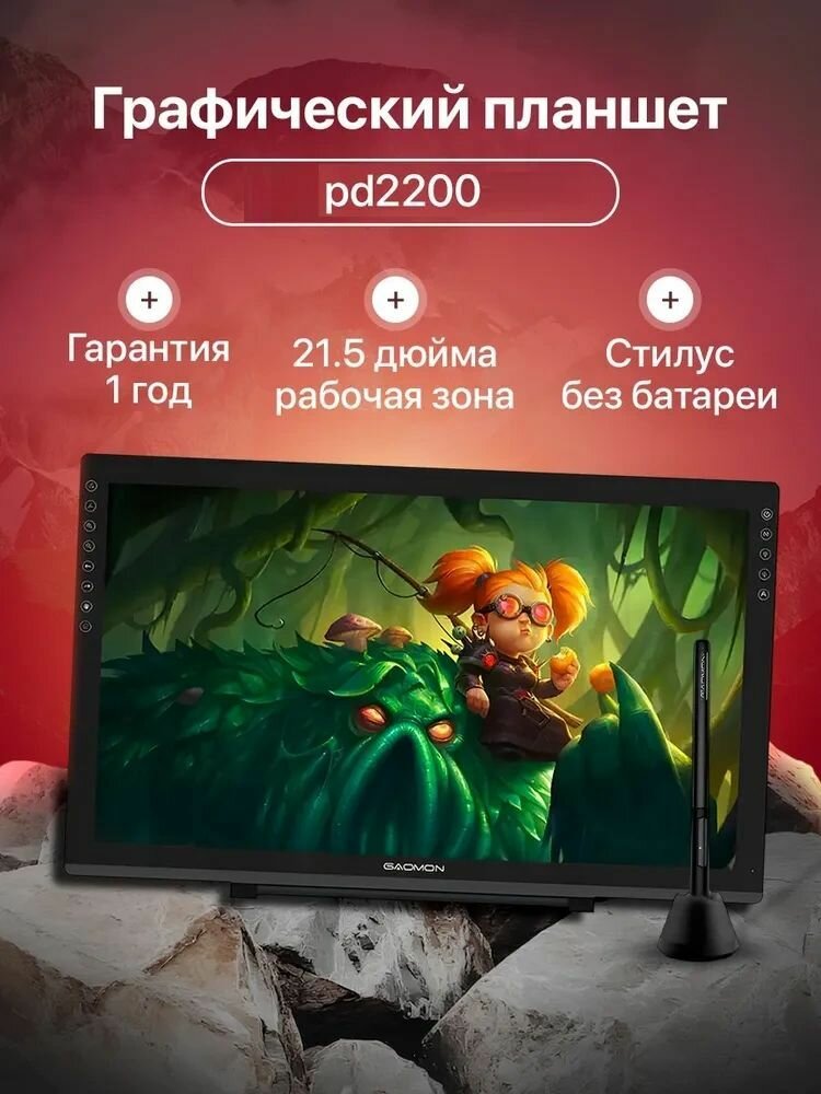 Графический планшет экранник ПД2200 - это внешнее устройство, которое подключается к компьютеру через кабель и позволяет рисовать пассивной ручкой / пером прямо на планшете, видя результаты на компьютере или ноутбуке. Не совместим с телефонами. Регулируемая подставка в комплекте. Будучи самым большим перьевым дисплеем, PD2200 имеет 21,5-дюймовую панель и достаточное рабочее пространство 476,64 × 268,11 мм, что позволяет проводить профессиональные презентации. Разрешение экрана 1920*1080. HD IPS Матрица с 16.7млн цветов. 92% NTSC (120% SRGB) позволят увидеть максимально богатый и насыщенный спектр цветов.