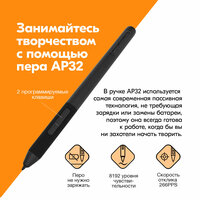 | Подробная комплектация | графический планшет, перо Artpaint AP32, кабель MicroUSB, запасные наконечники для пера 8 шт, руководство пользователя |