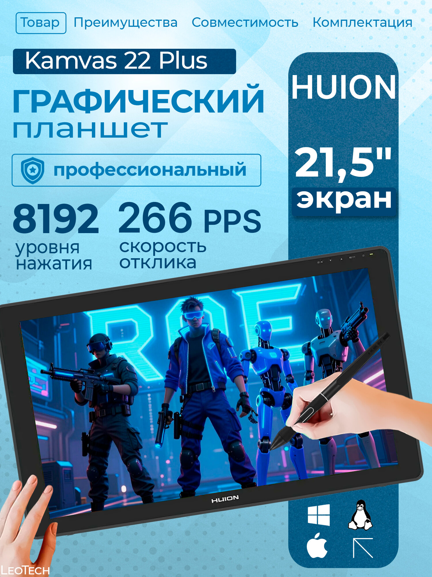 Kamvas 22 Plus может беспрепятственно работать с устройствами, работающими под управлением Windows, macOS или Android