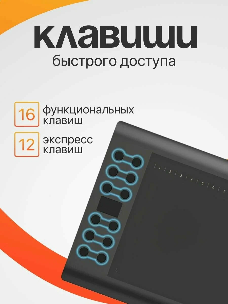 Профессиональный графический планшет GAOMON M 106K PRO для рисования с 12 экспресс +16 функциональными кнопками. Рабочая зона большого размера и малый вес. 10 x 6,25 дюймовая оптимальная рабочая зона удовлетворит Ваши потребности, позволит Вам получать удовольствие от рисования. Толщиной всего 1см и весом 780г планшет очень мобильный. Совместимость с ОС Android 6,0 +, Windows 10/8/7, Mac OS версии 10,12 и выше. Также совместим со многими основными дизайнерскими программами, такими как Photoshop, SAI, Painter, Illustrator, Clip Studio, Ibis Paint-X и многое другое. Низкий вес (только 14г) и энергономичный дизайн, рука не устанет даже после продолжительной работы. Подходит для редактирования рисунков, рисования, проектирования промышленной архитектуры, дизайна видео для игр/мультфильмов, подписи, онлайн образования и игр, таких как osu! Поддерживает большинство графических редакторов, таких как PS, SAI, Corel Painter, Illustrator, SketchBook Pro, Manga Studio и т. п. Совместим с Windows 7/8/8.1/10, MAC OS X10.8 или новее. Режим для левшей и правшей. Гаомон М106К Про поддерживает режимы для левшей и правшей. По умолчанию – режим для правшей. Режим для левшей можно настроить в Расширенных настройках панели управления драйвера. Перо не требует подзарядки. Отличный подарок сестре, женщине, жене, внучке, девушке на Новый год, 8 марта, 23 февраля!