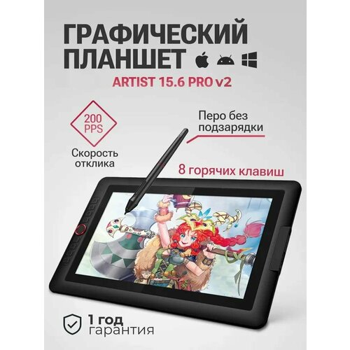 Artist 15.6Pro v2 - это интерактивный графический планшет - экранник который позволит вам раскрыть свой творческий потенциал и создавать настоящие шедевры. Работает только при подключении компьютеру и ноутбуку. Комплектация: Планшет, перчатка, Перо пассивное (без батареи); Наконечники для пера; Пенал для пера; Кабель 3-в-1 , зарядный кабель, инструкция, подставка. С его помощью вы сможете рисовать и заниматься дизайном в цифровом формате. Этот монитор оснащен качественным 15,6-дюймовым экраном, который отображает яркие и насыщенные цвета. Благодаря его большому размеру, вы сможете комфортно работать над любыми проектами, от мелких деталей до полноценных композиций. Графический дисплей Artist 15.6 Pro 2nd имеет высокое разрешение, что позволяет создавать четкие и детальные рисунки. Благодаря уровню давления 8192 и технологии скорости отклика 200 pps, этот планшет сочетает в себе высокую чувствительность и точность, позволяя вам контролировать линии и создавать плавные переходы. Artist 15.6 Pro 2 version оснащен 8 горячими клавишами, которые можно настроить под свои нужды. Они предоставляют удобный доступ к часто используемым функциям и кистям, позволяя вам сосредоточиться на процессе рисования без отвлечений. В комплекте с планшетом идет перо без подзарядки, что делает Артист 15.6 про в2 идеальным инструментом для длительных творческих сессий. Благодаря 5080 lpi разрешению датчика, рисуйте точно и без задержек, получая максимальное удовольствие от процесса. Artist 15.6 Pro 2 версии подключается к компьютеру через USB-провод, что обеспечивает устойчивое и надежное соединение. Он совместим с операционными системами Windows, Chrome, Mac и Linux, а также с различными графическими и дизайнерскими программами. Автономный планшетный монитор Artist 15.6 Pro - недорогой вариант для взрослых и начинающих художников, предлагающий высокое качество и функциональность по доступной цене. Превратите ваш компьютер в настоящую художественную студию с помощью этого удобного и многофункционального электронного устройства. Не упустите возможность купить Артист 15.6 Про и начать создавать свои собственные произведения искусства. Отличный подарок мужчине, женщине, парню, мужу, девушке на Новый год, 8 марта, 23 февраля!