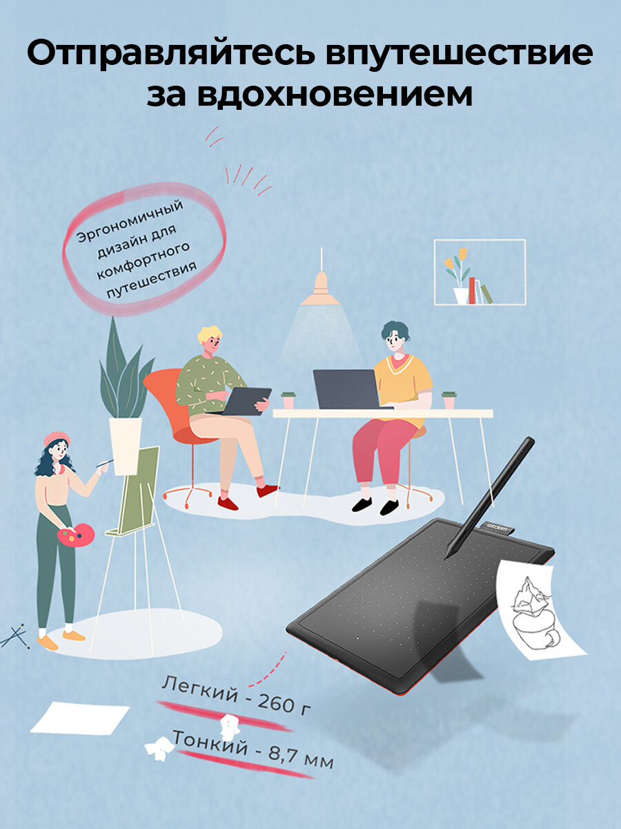 One by Wacom позволяет воплощать ваши задумки в цифровом виде быстрее и легче. Это идеальный планшет для освоения работы с графическими планшетами и обучения основам цифрового искусства. Подходит для начинающих и продвинутых художников и фотографов, а также для детского творчества.