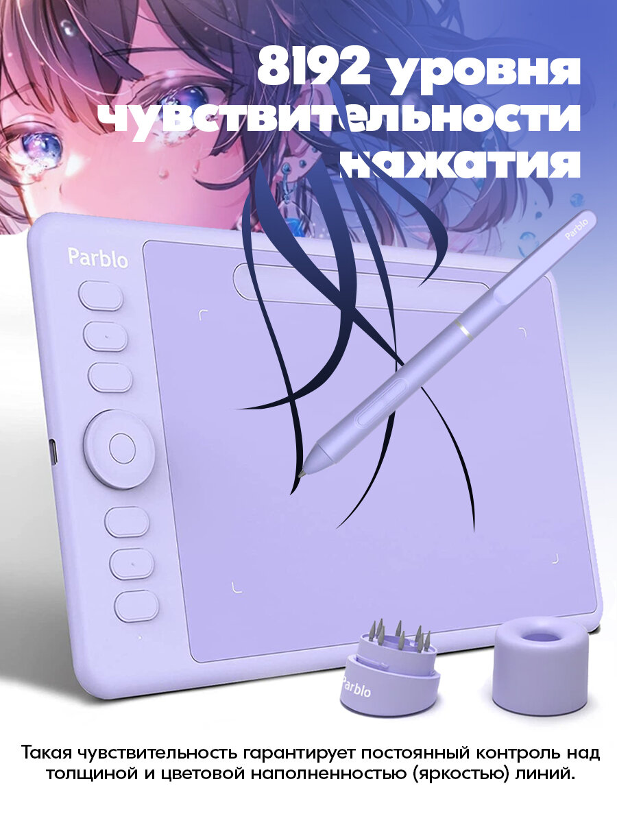Графический планшет Parblo Intangbo S Lilac Purple для рисования, фиолетовый, A5, 8192 уровней нажима: сравнение цен, характеристики, фото, актуальное наличие и цены.
