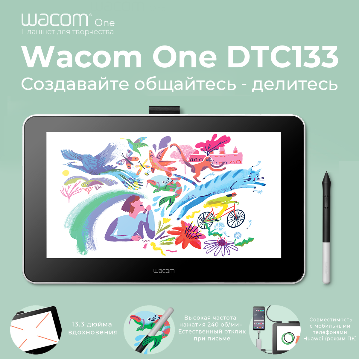 | Дополнительная информация | ПО в комплекте Celsys Clip Studio Paint Pro, Adobe Premiere Rush, Bamboo Paper by Wacom; технология изготовления матрицы IPS; яркость 200 Кд/м²; отклик 26 мс; угол обзора 170°; контрастность 1000:1; видео разъемы HDMI; соотношение сторон 16:9; угол наклона пера 60°; точноcть пера 0.01 мм; 2 кнопки на пере |