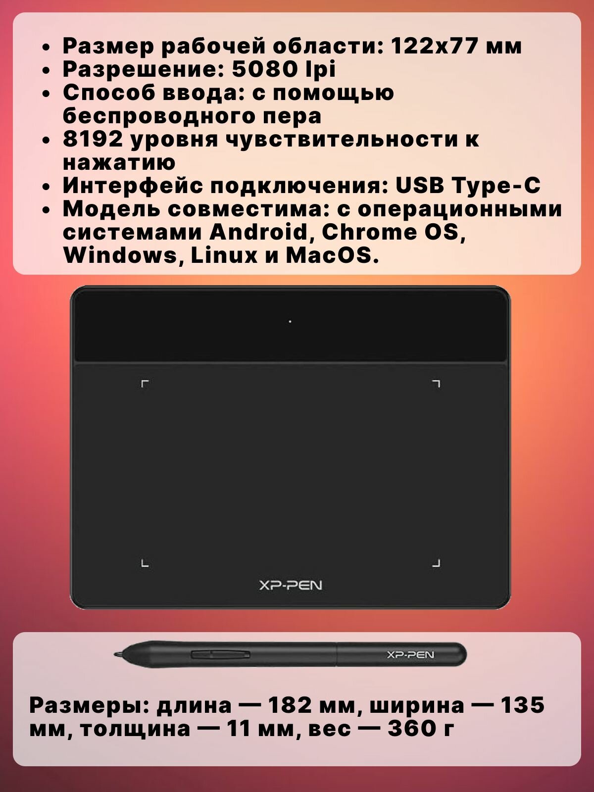 | Подробная комплектация | графический планшет, ручка, стилус, наконечник для стилуса (10 шт.), кабель USB-C |