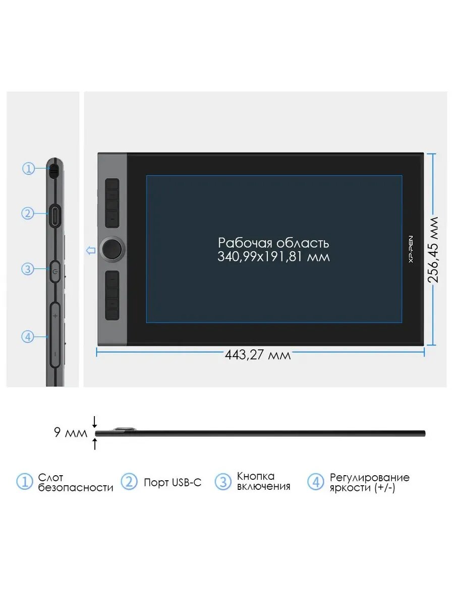 XPPen Artist Pro 16 – тонкий и легкий, его толщина составляет всего 9 мм. Размер экрана 15.4 дюймов. Дизайн современный и стильный, выполнен в черном и серо-металлическом цветах. Это просто идеальный инструмент для рисования! Artist Pro 16 - изящен, за что получил награду Red Dot Contemporary Good Design Award, истинное международное признание от выдающихся дизайнеров.