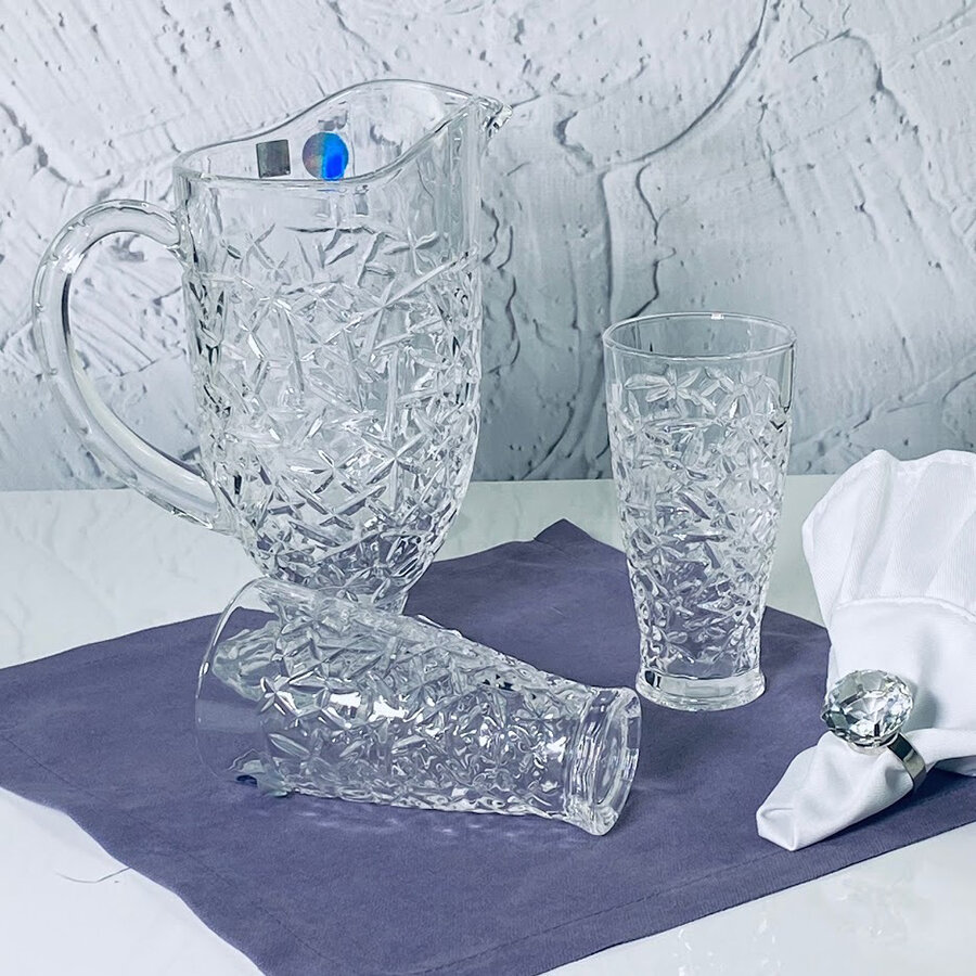 Набор графин и стаканы из стекла Lenardi 1250 и 300 мл — идеальный выбор для сервировки стола на любой праздник. Графин и стаканы выполнены из прочного качественного стекла, что обеспечивает долговечность и сохранение первоначального вида. Удобная ручка кувшина и носик облегчают процесс наливания напитков. Этот набор подходит для подачи воды или сока, лимонада или компота, молока или коктейлей. Стаканы также можно брать с собой в поездки и на отдых. Этот набор - универсальный и стильный подарок для ваших близких на любой праздник, будь то Новый года, новоселье или день рождения.