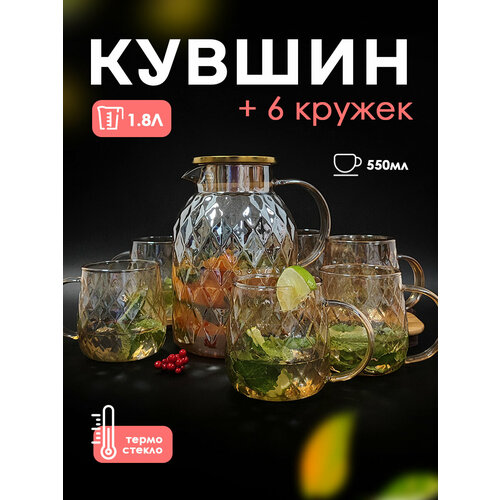 Графин/кувшин 1.8л для воды и для горячих напитков и 6 кружек по 350 мл, Baizheng: сравнение цен, характеристики, фото, актуальное наличие и цены.