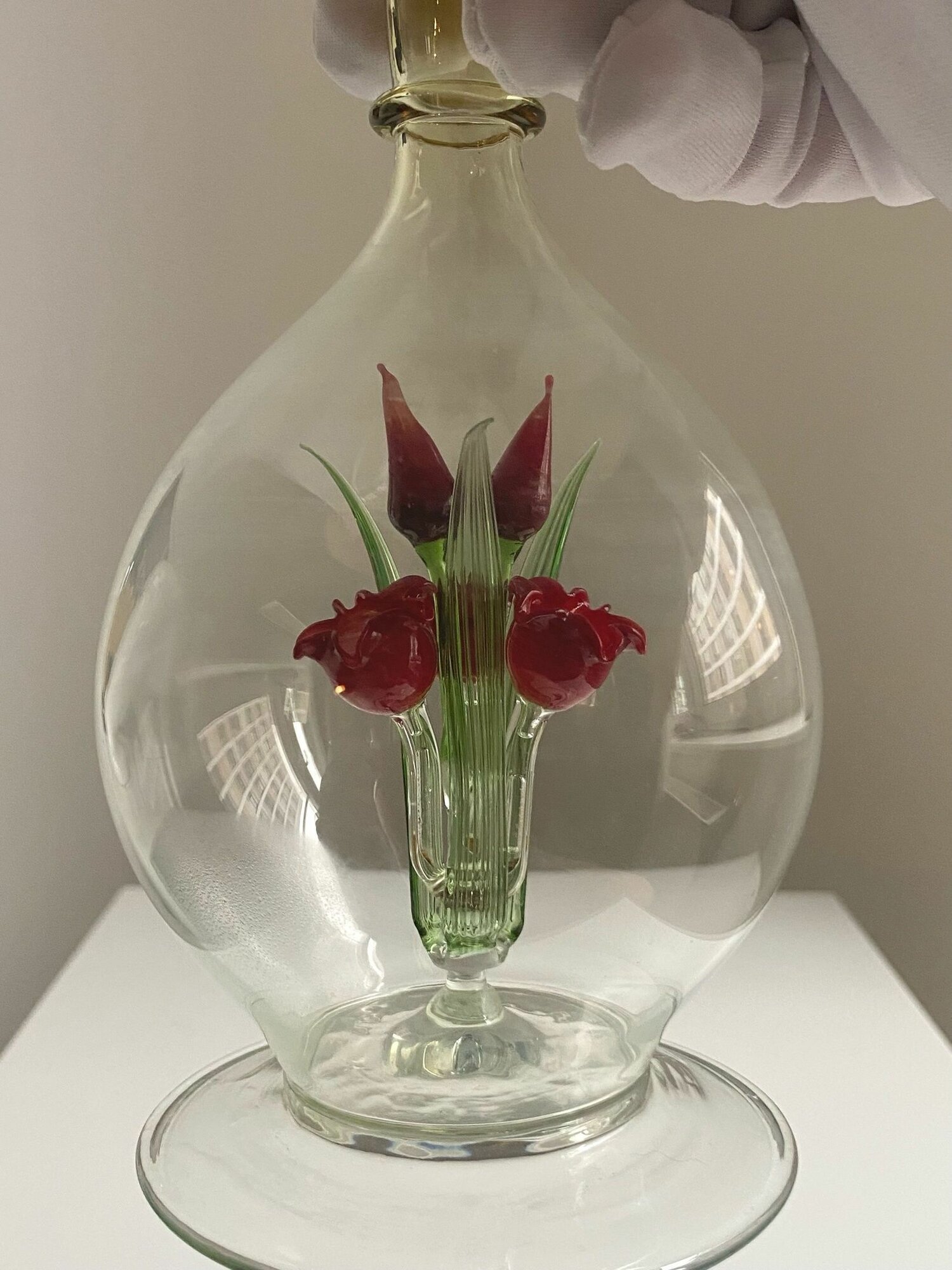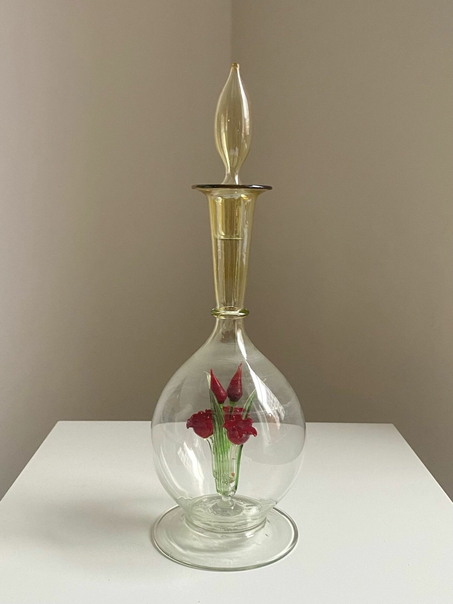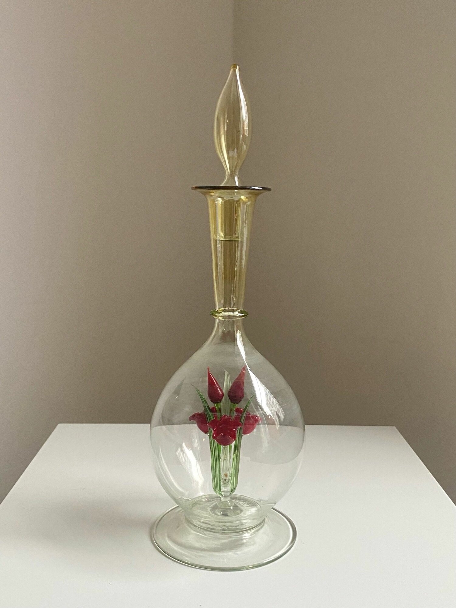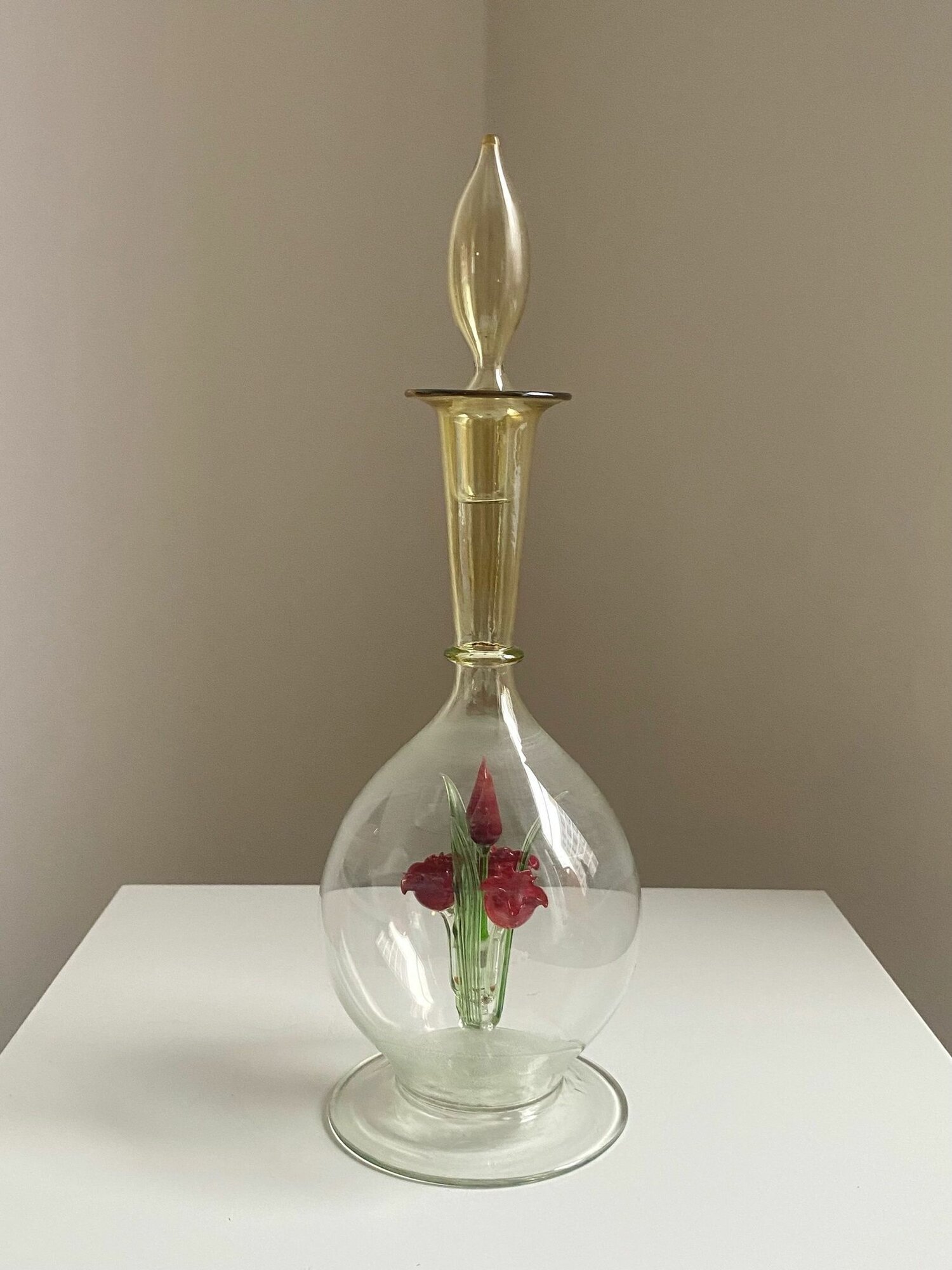 Купить Графин «Цветы» СССР! Налет! Высота: 28 см. Цветное стекло. Красивая форма. Гутная техника с доставкой по всей России.