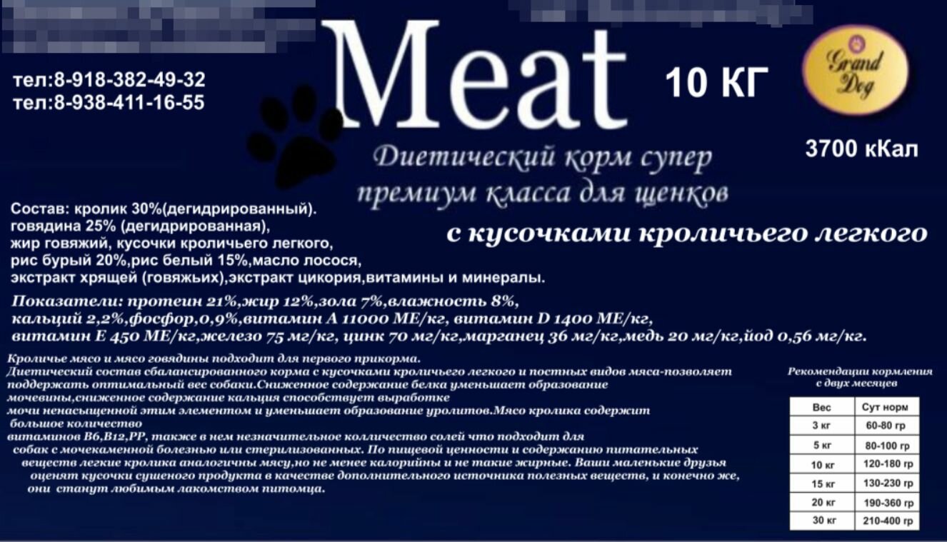 Состав: кролик 30% (дегидрированное), говядина 25% (дегидрированное), жир говяжий, кусочки кроличьего лёгкого, рис бурый 20%, рис белый 15%, масло лосося, экстракт хрящей (говяжьих), экстракт цикория, витамины и минералы.