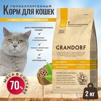 Корм GRANDORF для стерилизованных кошек 4 мяса с рисом и пробиотиками 2 кг: сравнение цен, характеристики, фото, актуальное наличие и цены.