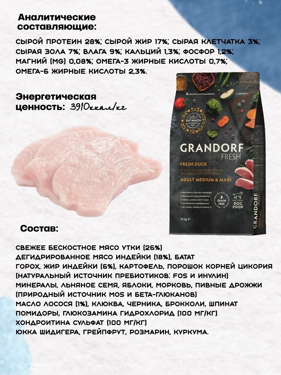 составу корма Grandorf FRESH легко усваиваются и отлично подходят для животных с чувствительным пищеварением или пищевой аллергией.